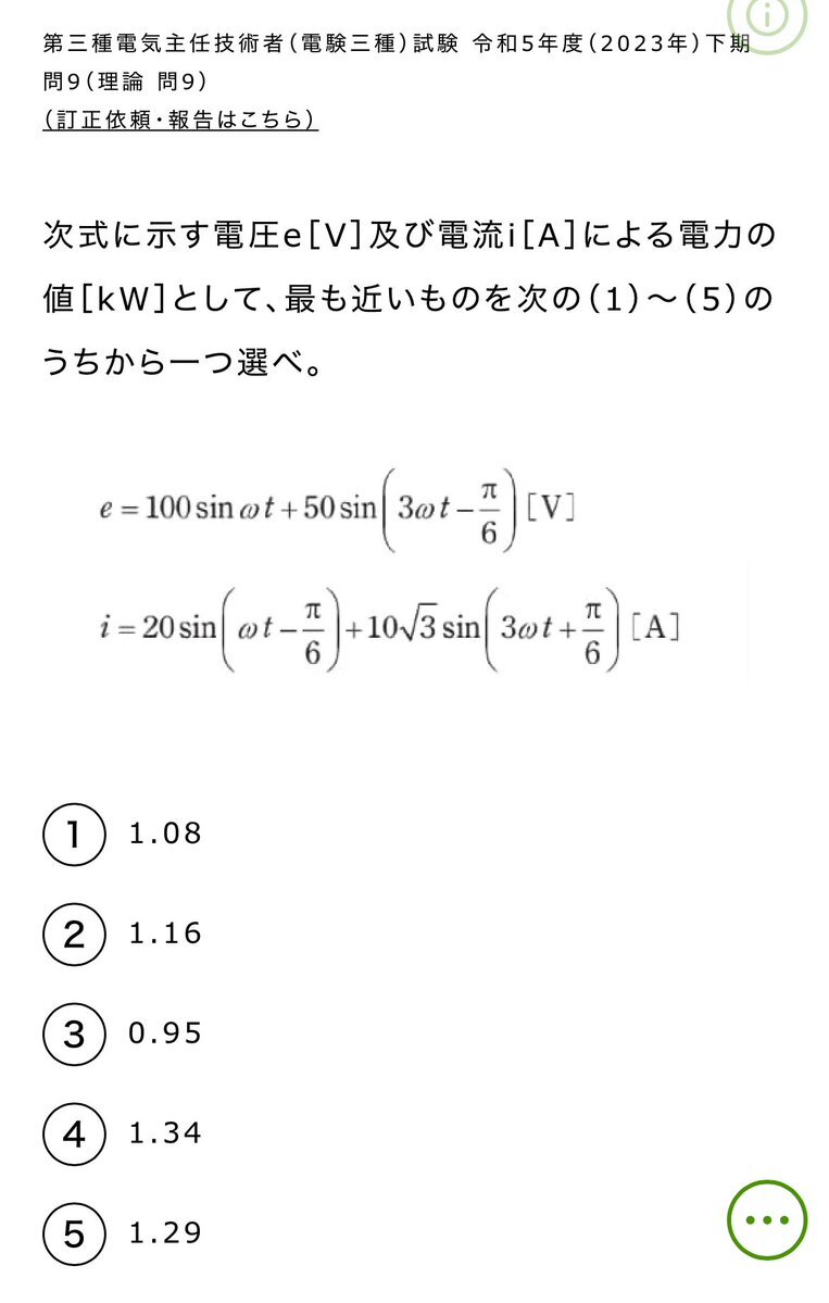 #電験三種 令和5年下期理論科目問題9 電圧と電流の瞬時値?から電力を求める問題 これどっから考えればいいのかわからない... こんな奇問より基礎固めた方が良く希ガス pic.x.com/evdeoCQ2cx