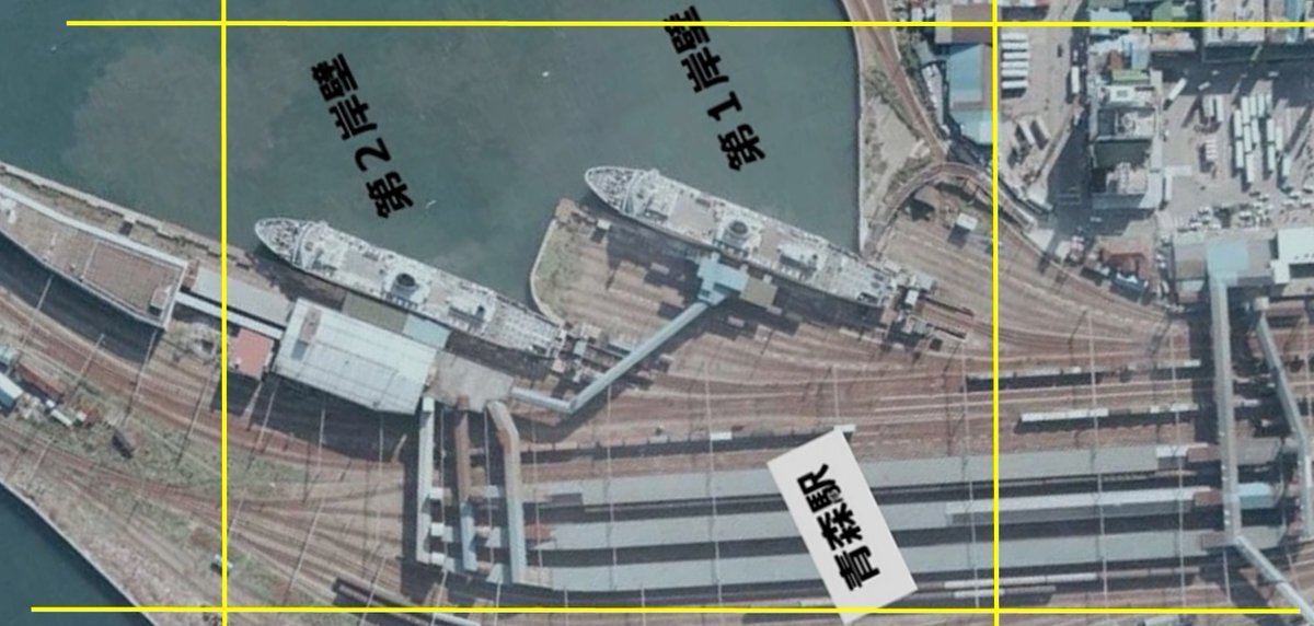 見本とする範囲はA3サイズのジオラマだと この範囲くらいかねえ 第一第二くらいまではカバーできるかと思うが 駅舎は犠牲になるな。。。 ※当時の空撮画像は借り物です #ジオラマ #青函連絡船 pic.x.com/WNOBpLeMQ8