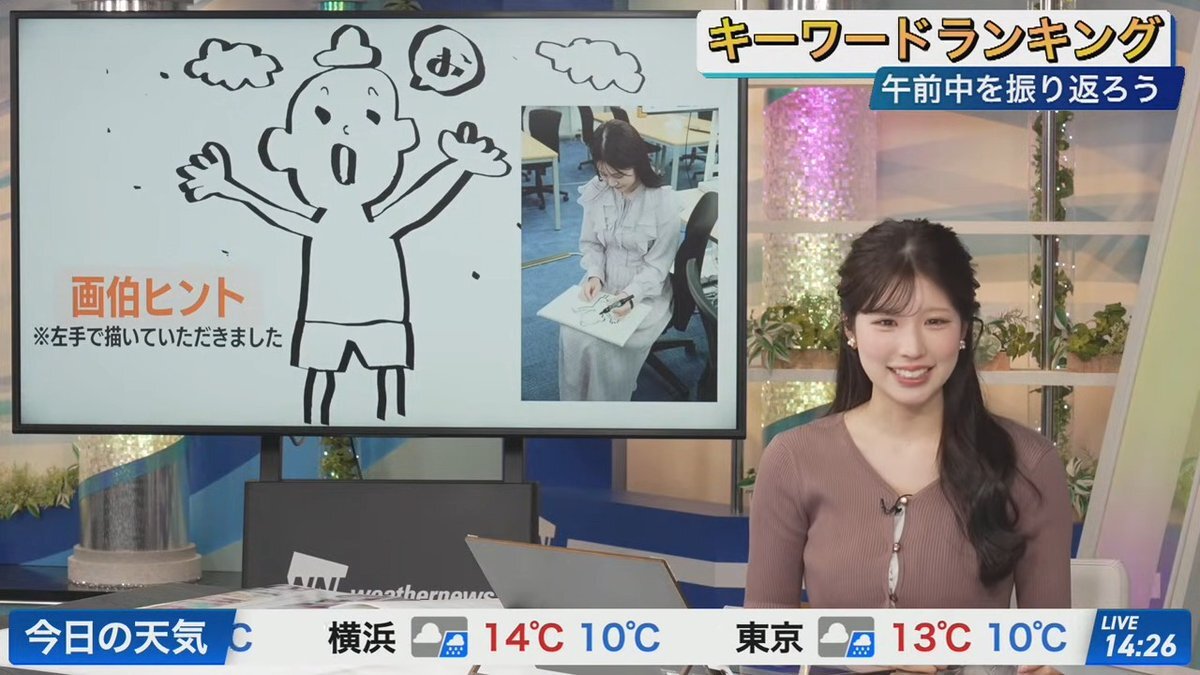 【今日のキーワードランキング】 肌寒いOr小雨で悩み、小雨を選んだ会長🐹お見事👏 #青原画伯 左手Ver.とは何て面白いんだwww🤣 #小林李衣奈🐹 #青原桃香🍑📍 pic.x.com/U4ZTbNuCeQ