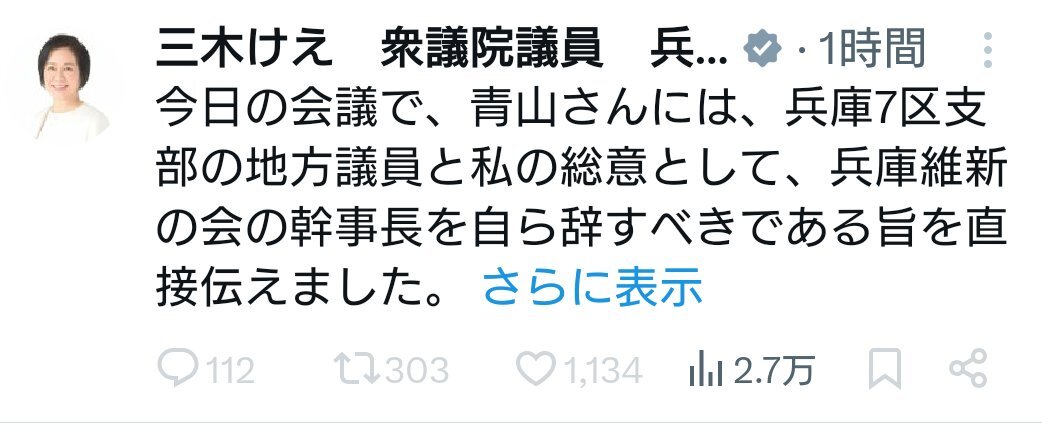 返信先:@masuyama_makoto青山議員の『事実無根』発言、被害者を二度傷つけるなんて許せませんね。 ある市議会議員がセクハラで辞職している中、維新の会はなぜ甘い処分で済ますんですかね😅 真の改革のため、青山議員の辞職を求めます。 増山さんのいつも解説ありがとうございます🙇‍♂️ #青山暁議員の辞職を求めます