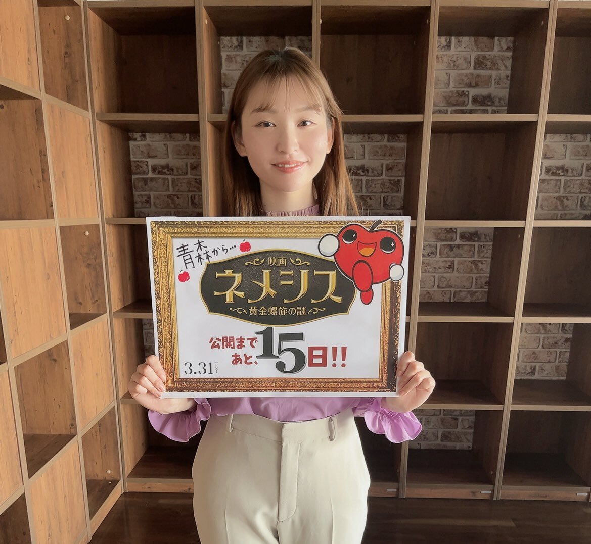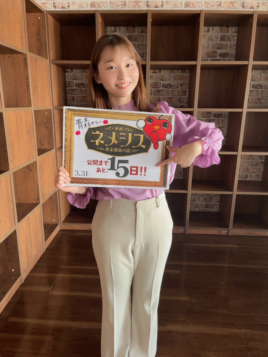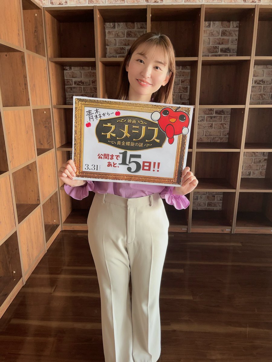 #映画ネメシス @nemesis_ntv_ #青森放送 #橋本莉奈 アナが持っていた カウントダウンボードです🍎 らぶりんもいます♪ みなさんも、ぜひ!! 一緒に公開を盛り上げましょう!! 当選確率もUP✨ #ネメシス公開カウントダウン #広瀬すず #櫻井翔 #3月31日公開 pic.x.com/FcvUdFqKOs