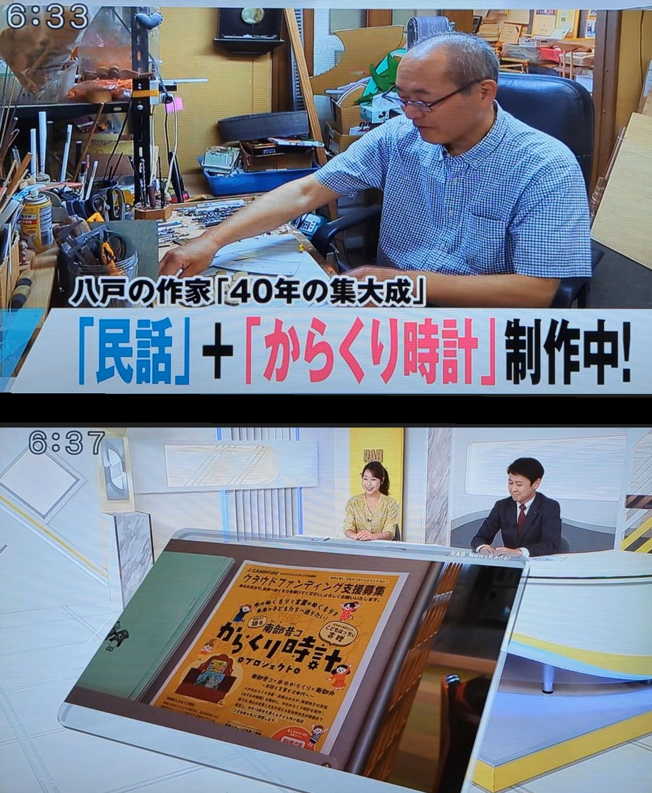 クラウドファンディング「南部昔コからくり時計プロジェクト」について、放送していただきました😃 制作もいよいよ大詰めを迎えております 完成は来月を予定しておりますので、どうぞご期待ください #高橋みのる #南部昔コからくり時計 #青森放送 #八戸 #はっち pic.x.com/oK1kSmwhxT