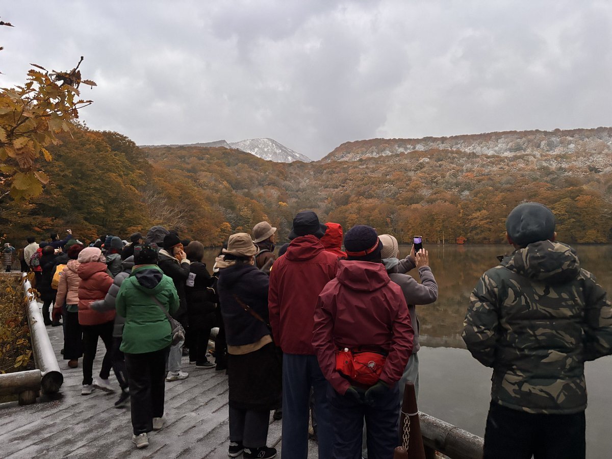 2025年10月29日 12時10分 蔦沼の様子 紅葉状況:約8割 駐車場混雑状況:約9割 デッキ混雑状況:約1割 満車の場合は入口にてお待ち頂く場合がございます。 雪が残っており、滑りやすくなっていますのでお気をつけ下さい #蔦沼 #十和田八幡平国立公園 #国立公園 #蔦温泉 #青森県十和田市 #カメラ pic.x.com/bJpxQ7johh
