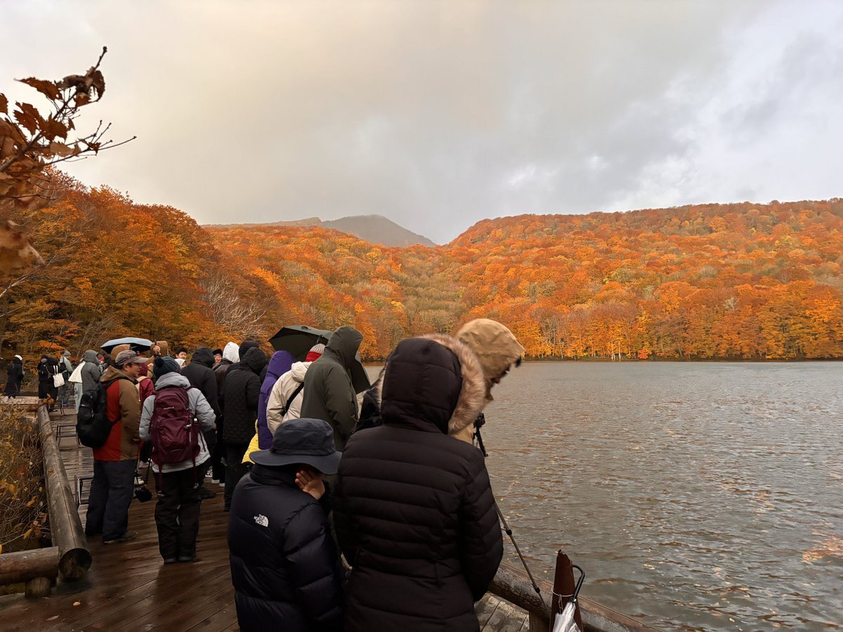 2025年11月2日 12時50分 蔦沼の様子 紅葉状況:見頃 駐車場混雑状況:約8割 デッキ混雑状況:約2割 蔦沼の紅葉が見頃を迎えました。 小雨が降ったり止んだりです。 雨具があると安心です #蔦沼 #十和田八幡平国立公園 #国立公園 #蔦温泉 #青森県十和田市 #カメラ pic.x.com/jrn1BE8Hya