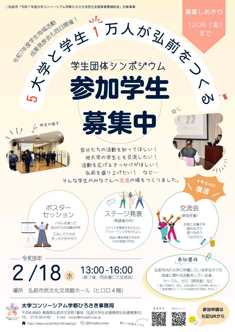 【#弘前大学】#弘前大 #ニュース 【2026年2月18日】13:00〜16:00 於: #弘前市文化交流館*ホール*#青森県弘前市 #大学コンソーシアム学都ひろさき ⬇️詳細 x.com/hirosaki_univ/…