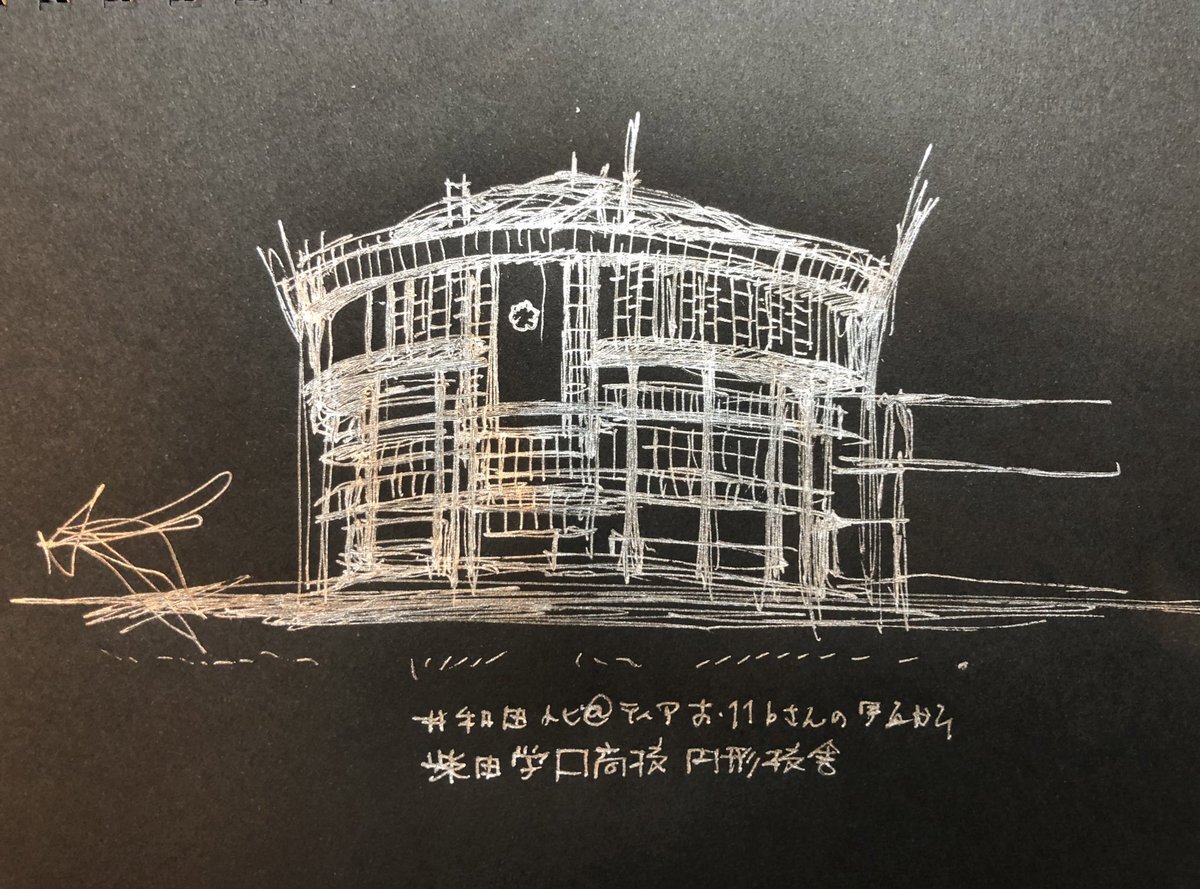 ◼️スケッチ 井和田トビ@ティアお11bさん@yamaishipenguin の写真から 【柴田学園高校 円形校舎】 昭和38年(1963)竣工 #近代建築 #青森県弘前市 pic.x.com/PtXF6cGRoL