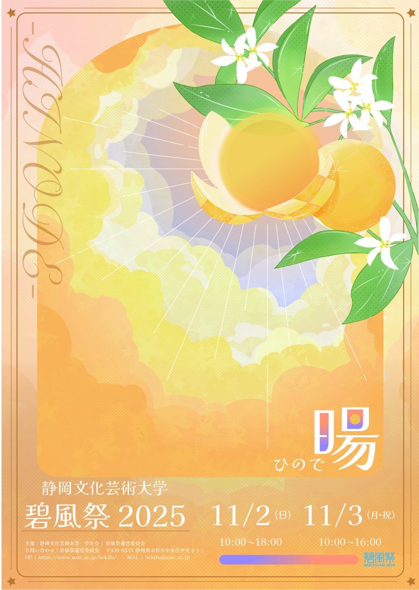 大学祭「#碧風祭2025」 本学公式WEBサイト内特設ページ ▶️suac.ac.jp/hekifu/ イベントページ ▶️suac.ac.jp/event/03832/ 碧風祭公式SNSアカウント(X、Instagram) ▶️@hekifu にて情報公開中💁 詳細情報や注意事項なども公開しているので、ご来場前にご確認を! #静岡文化芸術大学 #SUAC pic.x.com/F60EyT1PgL