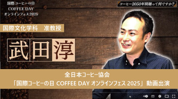 10月1日の「国際コーヒーの日」にあわせて開催された「COFFEE DAY オンラインフェス2025」の動画に、本学国際文化学科・武田淳准教授が出演しました☕ 「コーヒーの2050年問題」について、動画内で解説しています💻 詳細▶️suac.ac.jp/topics/topics/… #静岡文化芸術大学 #SUAC #研究 pic.x.com/YJDorIA1Xv