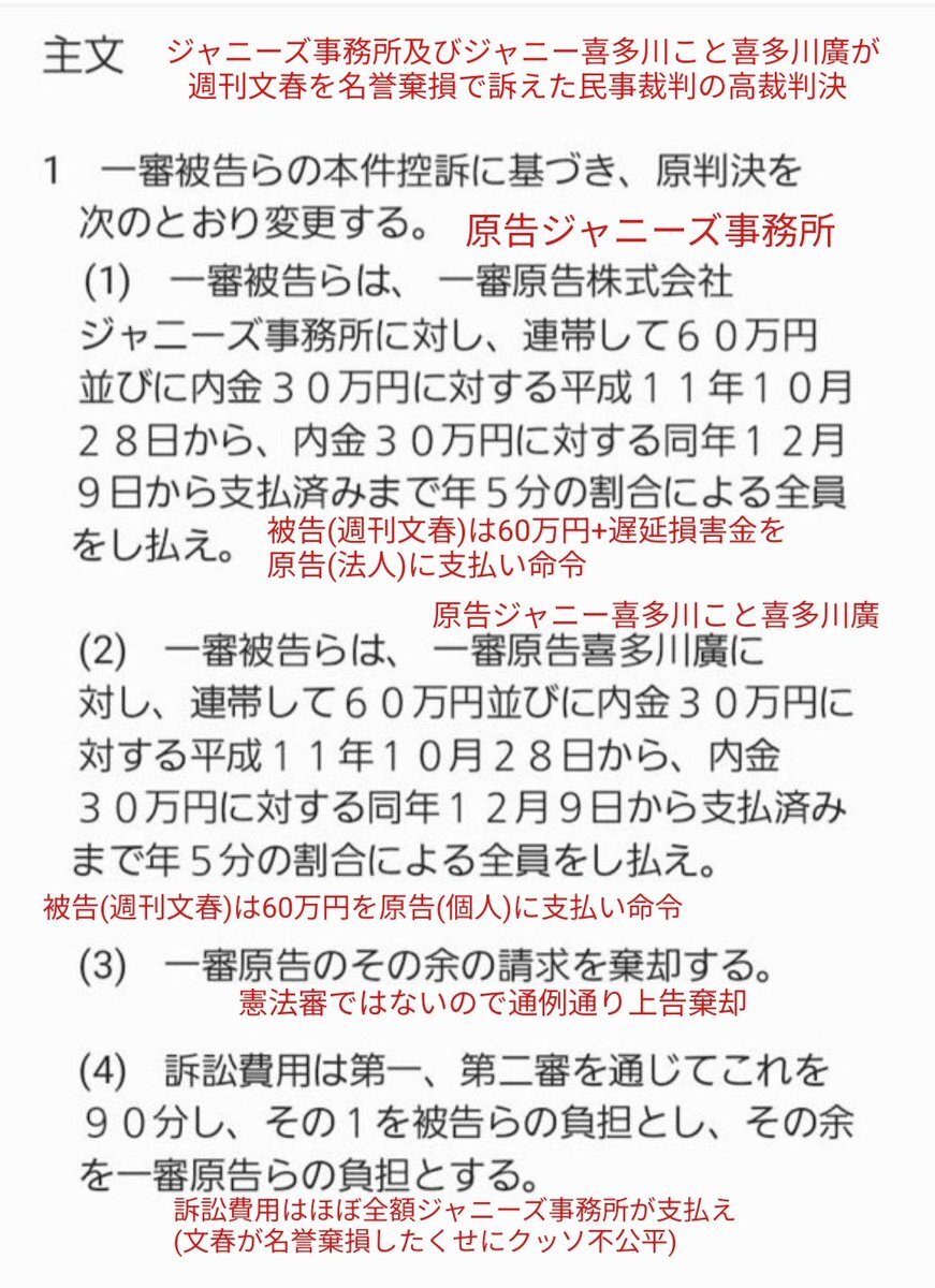 返信先:@shizushinジャニー喜多川こと喜多川廣(個人)とジャニーズ事務所(法人)が原告の名誉棄損裁判で「民事の最高裁で 原 告 が刑事相当の加害行為をしていたことが認められた」とか本気で言ってんの? この元朝日新聞記者は何言ってんの? #柴山哲也 #静岡新聞 pic.x.com/c3wBGfj76e