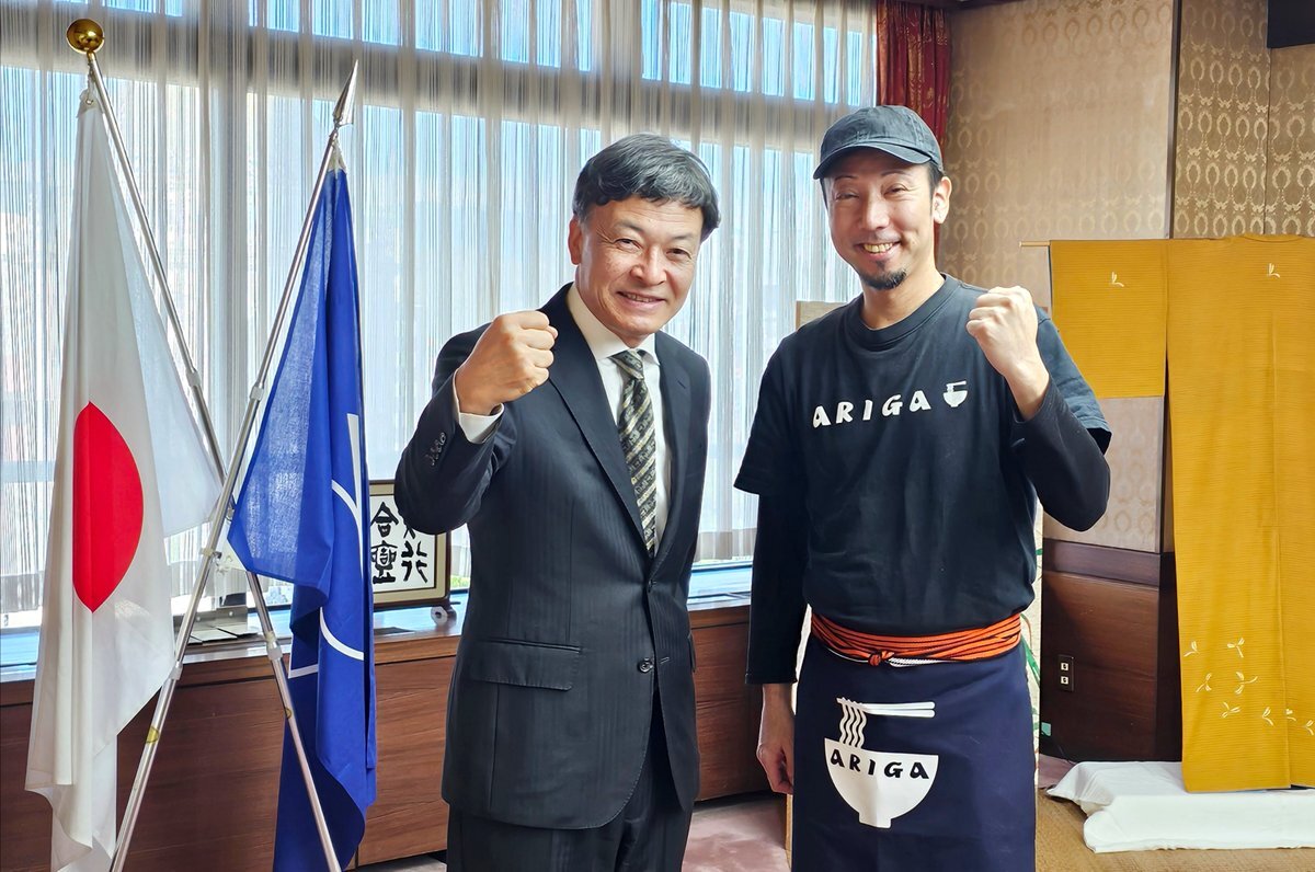 難波市長表敬訪問‼️ ご当地ラーメン総選挙、頑張ります💪 #難波市長 #表敬訪問 #第一テレビ #SBSテレビ #静岡新聞 #麺屋ARIGA #日本ご当地ラーメン総選挙 #ファイナリスト pic.x.com/y0WdiW5zcV