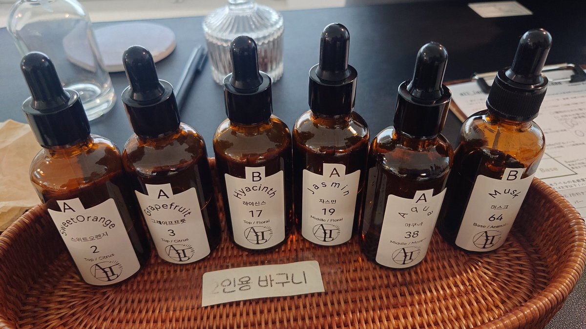 #独り言ち #あきこのくだらない日記 #韓国旅行 65種類の香りの原液から好みの6種類選んで、その分量を調合して自分オリジナルの香水作ったよ! 熟成期間が必要だから使用出来るのは2週間後 楽しみだわ! pic.x.com/ruHp7Z6WDv