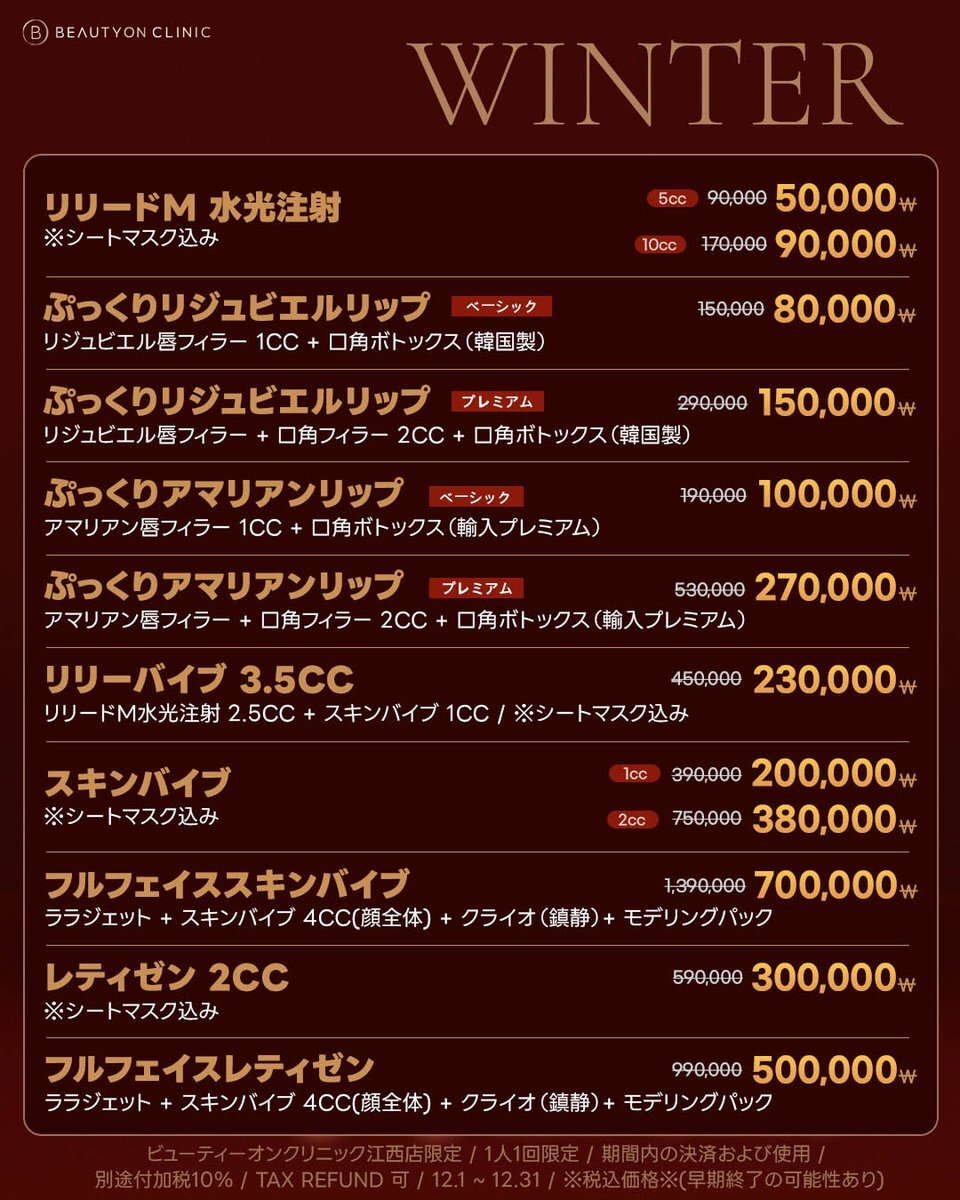 🎁冬到来!12月限定イベント🎁 スキンブースター(リリードM・スキンバイブ)から唇フィラーまで! 早い者勝ちの1ヶ月イベントをご用意いたしました👏 皆様のご来院お待ちしております💜 ご予約・お問い合わせは公式ラインまで💌 LINE ID:@318ozsfp #韓国皮膚科 #韓国旅行 #美容渡韓 #美容課金 pic.x.com/AeaKhD4CGL