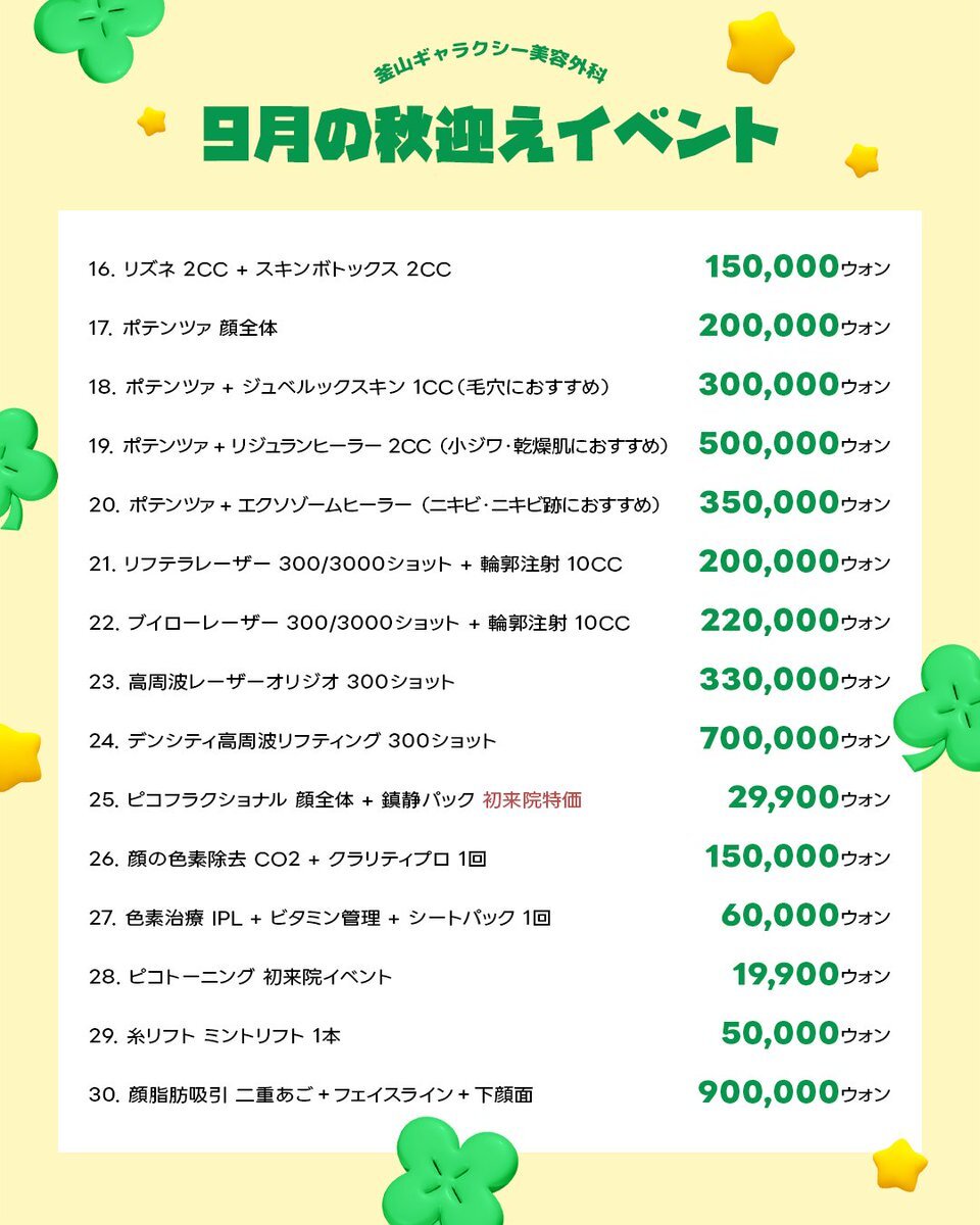 🍂 秋の #ギャラクシー 9月期間限定イベント! 🍂 涼しくなる季節、肌は乾燥しやすく、 もっと綺麗になりたい気持ちが高まる今 ✨ あなたのお肌と美しさのために、 ギャラクシーが特別な特典をご用意しました! line.me/ti/p/lO1a1ptP7… #韓国美容 #韓国整形 #釜山美容 #韓国旅行美容 #韓国美容外科 pic.x.com/f0A92aW7Km