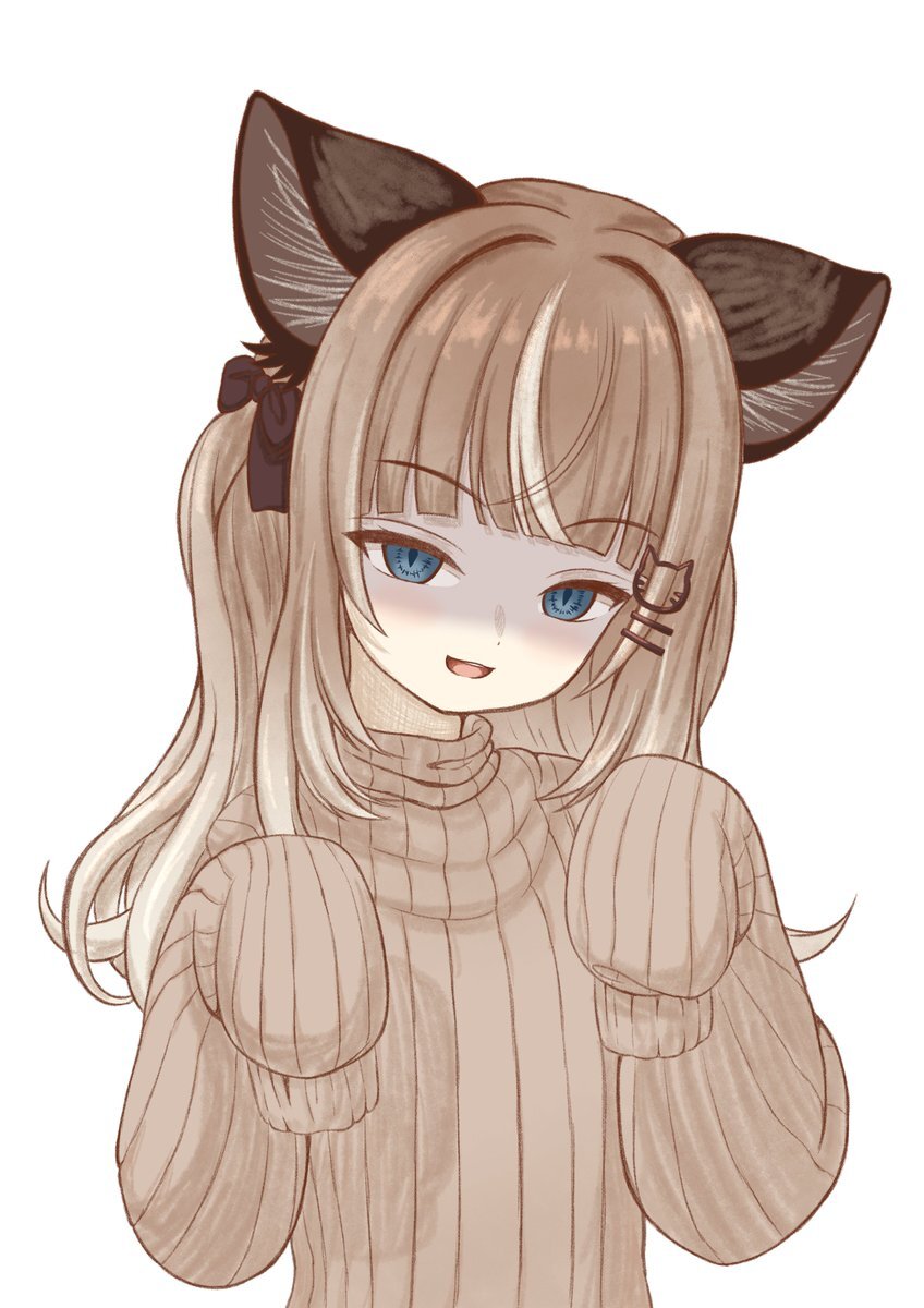 #音恋宮さくや #ねこみやあーと 今日はたてセタの日だよ、さくやちゃん! 立体感が出てより大きく見えるらしいよ! よりおおきk・・・えっと、その、ごめん・・・ pic.x.com/YhsNK3F1UU