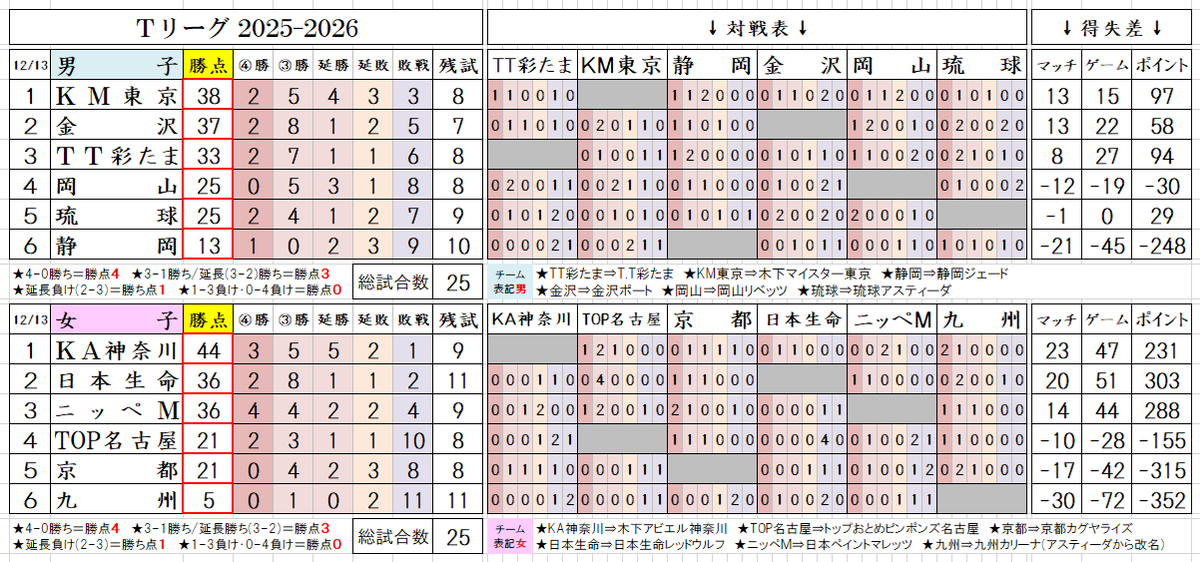 #フットサル #関東フットサルリーグ 1部 2025/12/8(月)時点の #順位表 と 残り3日の対戦相手 優勝争いと 入れ替え戦に行く 9位争いが 白熱していて 残り試合数が 異なるので 予想が難しい #ブラックショーツ は 三連勝すれば #自力優勝 出来るが ひとつでも落とすと 浦安2連勝で持って行かれる pic.x.com/AS77JgXwta