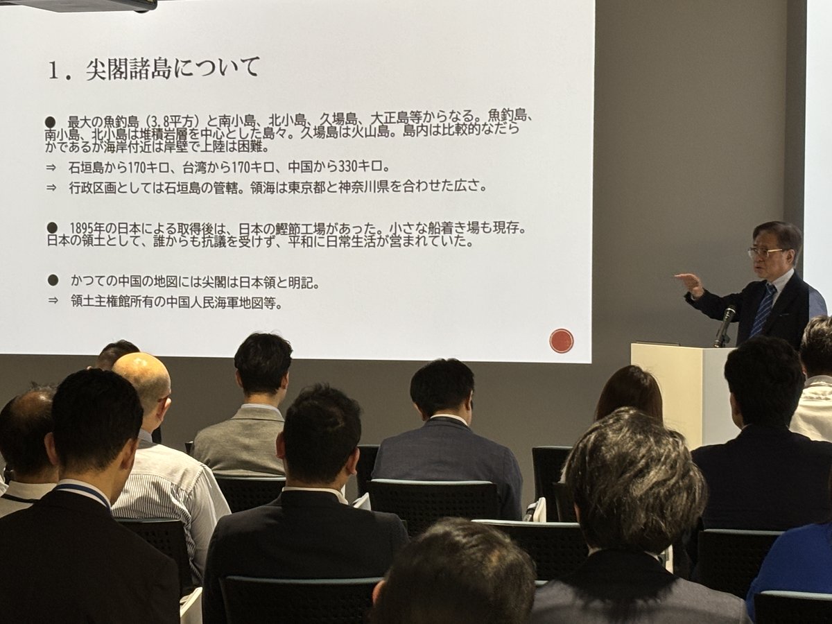 24日、#領土・主権展示館 #ゲートウェイホール での最初のイベントとして、#兼原信克 氏 (元内閣官房副長官補)に講演いただきました。兼原氏は、#尖閣諸島 について、歴史的なエピソードや第二次安倍政権で外交・安全保障政策の策定に関わったご経験を踏まえながらお話しいただきました。 pic.x.com/AFBkWNBPlL