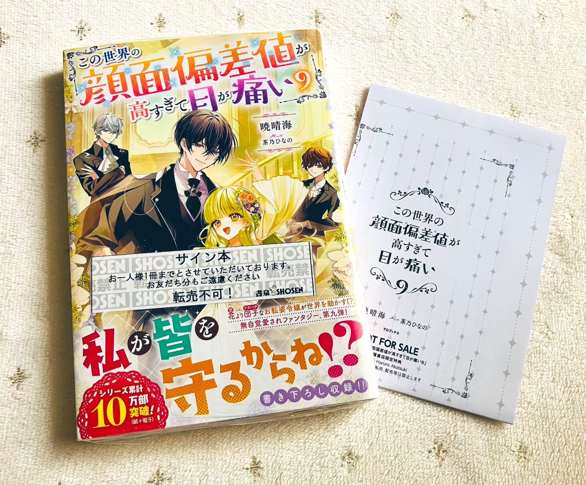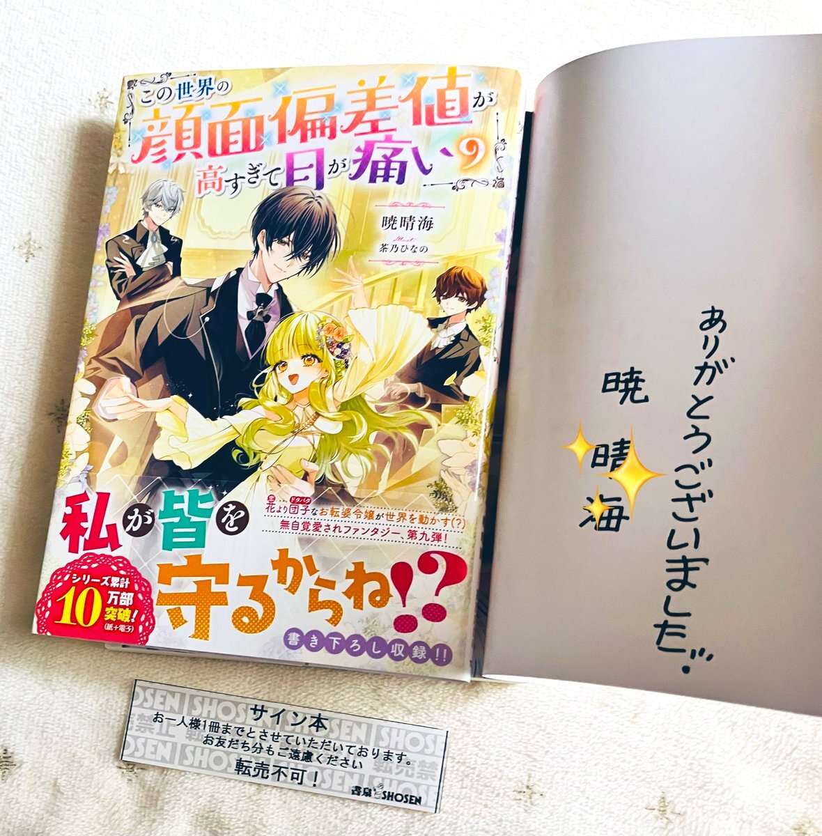 かなり出遅れましたが、お迎え報告✨ 「この世界の顔面偏差値が高すぎて目が痛い」9巻も無事にサイン本をお迎えできました🙌今回はもう無理かと思っていたので、感無量です💕特典SSも付いて嬉しい!🥰 暁先生、サイン本製作ありがとうございました!大切にします(❁ᴗ͈ˬᴗ͈)⁾⁾⁾ #顔面偏差値 pic.x.com/GaOZzjj5xD