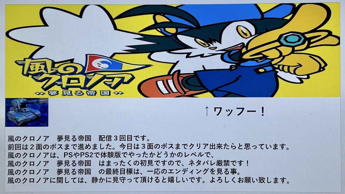 \本日21時より~!/ 風のクロノア ~夢見る帝国~ Part2始まります!🎮 ステージ3も頭使って攻略していきます! のんびり実況してるので、 お気軽に遊びに来てください📷 youtube配信はコチラ ☛youtube.com/live/xLLAf_wqR… #風のクロノア #ゲーム実況 #配信告知 pic.x.com/hybSDdWnMR
