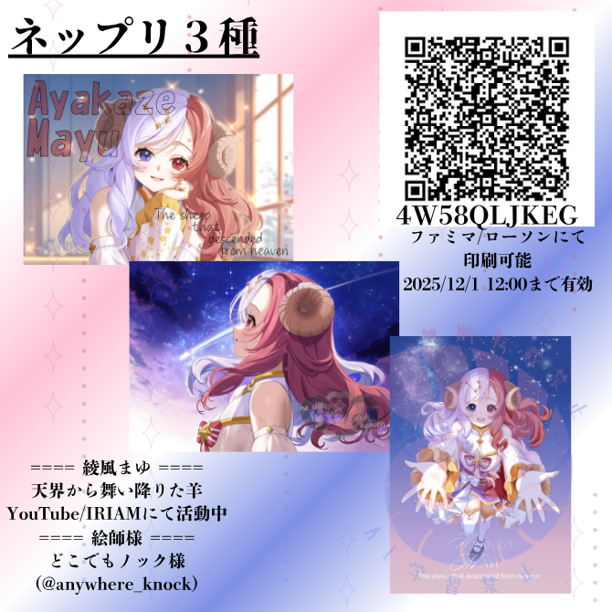 ✨グッズ販売記念✨ ネップリ 11/1~12/1期間限定プレゼント🎁 ※フチありにするとキレイに印刷できると思います✨ 【YouTube】 毎週土曜日8:00:料理動画投稿「もふ道」 チャンネル登録もお忘れなく▼ youtube.com/@ayakaze_mayu?… #風の便り pic.x.com/PCRfDxmwks
