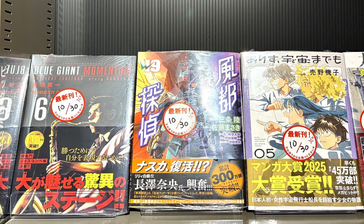 \#小学館 青年向け新刊コミックス入荷‼️/ 10/30発売⭐️その③(b・ω・)b 超名門ジャズコンペ編、決勝のステージへ‼️ #BLUE GIANT MOMENTUM🎷 特典ペーパー封入🌟 #風都探偵 特典しおり封入🌟新刊・既刊フェア展開中‼️ #ありす、宇宙までも🚀🌏 #九条の大罪 #少年院ウシジマくん #風俗怪談 pic.x.com/cMBJQ6oIih