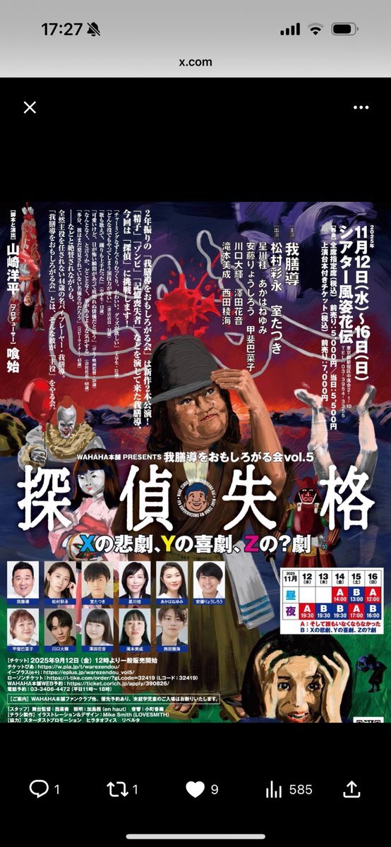 久々の風姿花伝で喜劇「探偵失格」😁 浅草以来の"あかはねゆみ"もナイスでございました👏✌️💋 @yumi_akahane #ワハハ本舗 #風姿花伝 #目白駅から散歩 pic.x.com/wYBES5LQXG