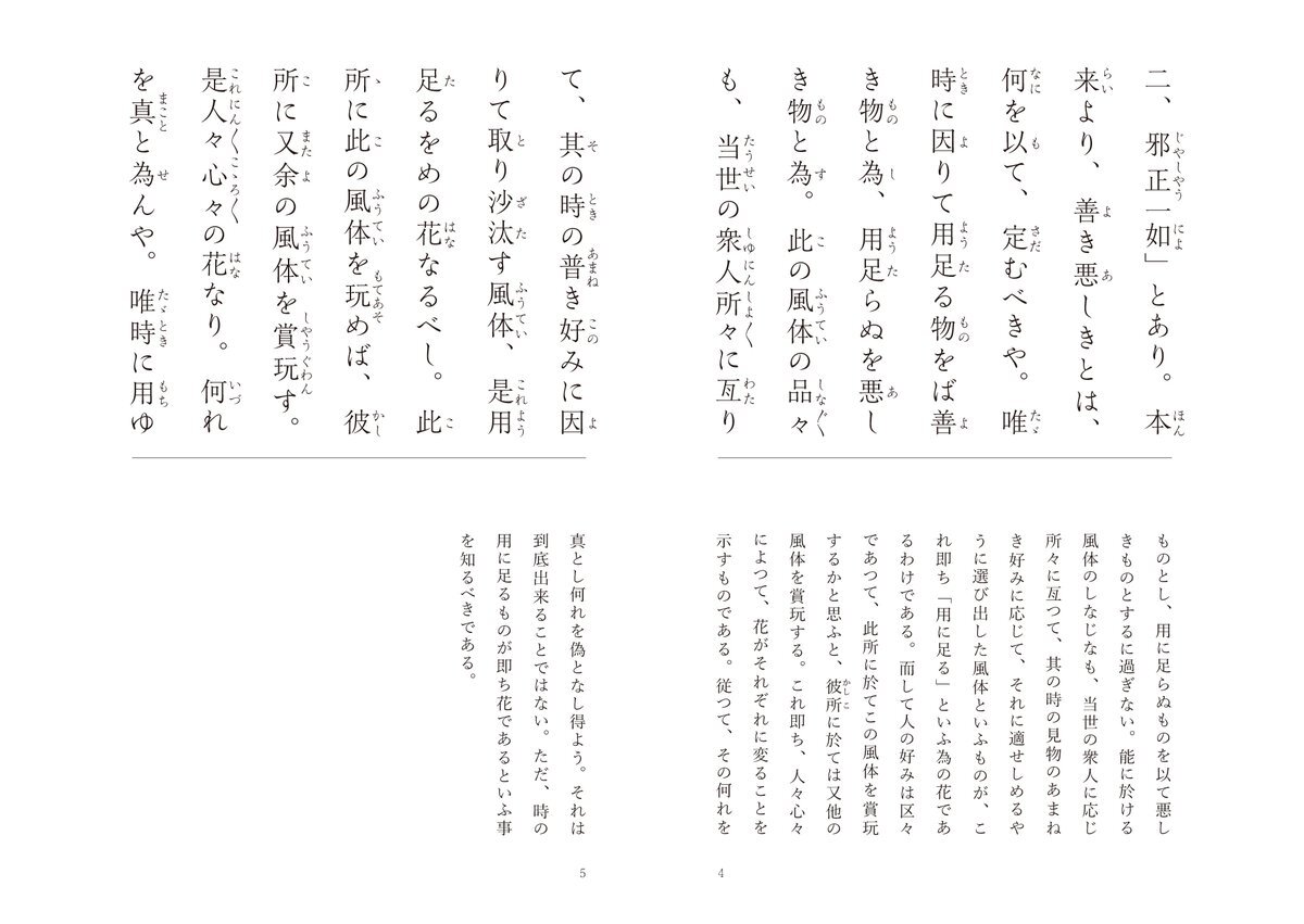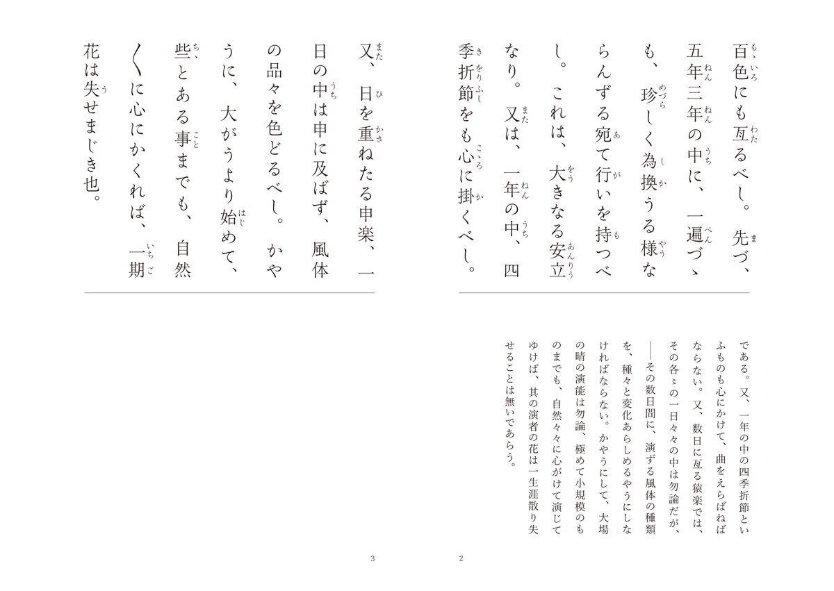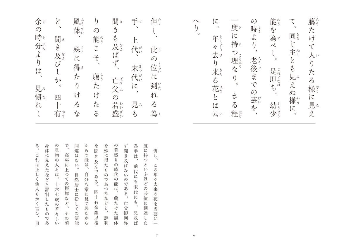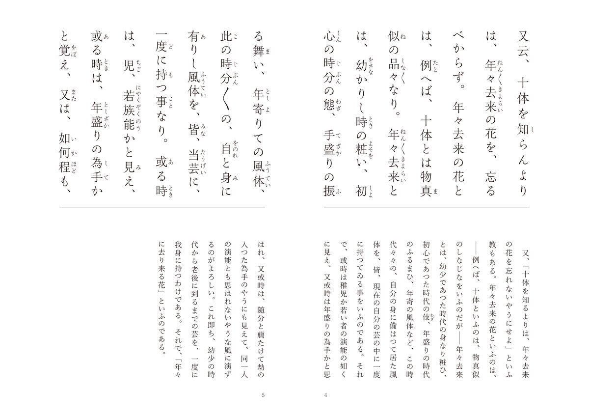 世阿弥 花伝書 44/49 #風姿花伝 花伝書別紙口伝 四【能に十体を得べき事】 その年齢ならではの芸のよさを、世阿弥は「年々去来の花」と呼びました。 それをそのまま保っておくことができれば、齢を重ねても珍しさを感じさせる手札が尽きることはないでしょう。 全文はこちら muhenko.com/zeamijurokubus… pic.x.com/QocYQ5nPb4