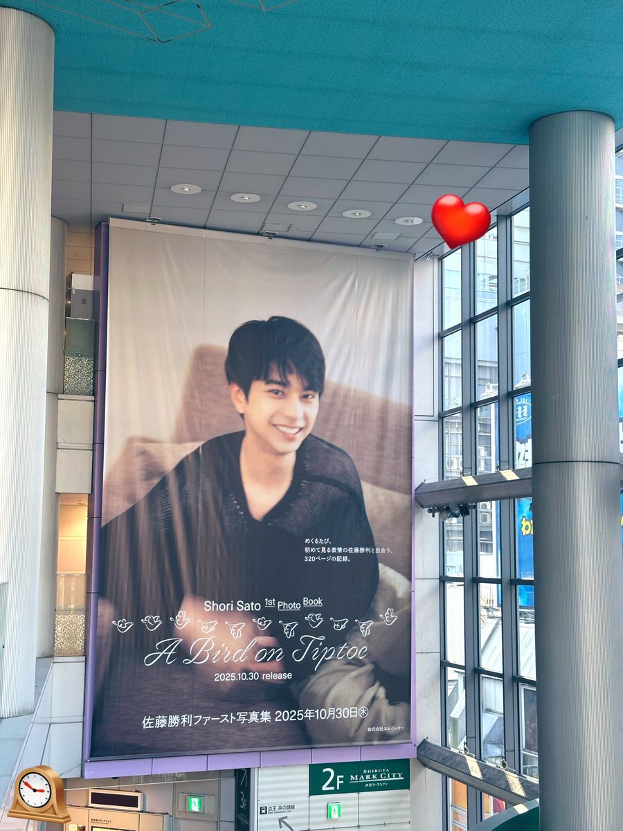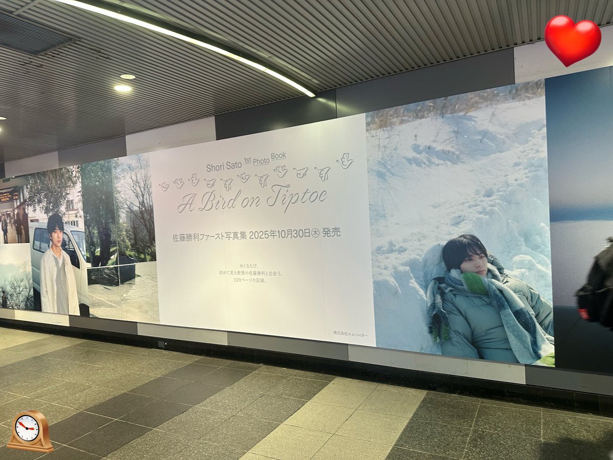 佐藤勝利1st写真集『A Bird on Tiptoe』🕊️ ˗ˏˋ 渋谷駅にて広告を掲出中!(〜11/2) ˎˊ˗ ❏掲載場所① 東京メトロ渋谷駅B2Fコンコースにて大型広告 ※ご覧になる場合は、周囲の安全に配慮をお願いいたします。 ※駅係員へのお問い合わせはご遠慮ください。
