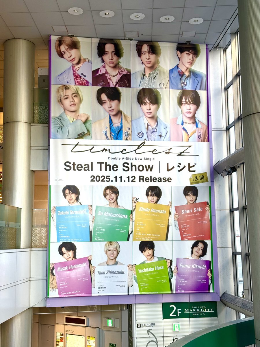 ⟡.· ┈⟡.· ┈⟡.· ┈⟡.· ┈⟡.· ┈⟡.· ┈⟡ ⠀#timelesz 新体制 初CDシングル💿 ⠀⠀『Steal The Show / レシピ』 発売を記念して渋谷をジャック🌈 ⟡.· ┈⟡.· ┈⟡.· ┈⟡.· ┈⟡.· ┈⟡.· ┈⟡ 本日から、『Steal The Show / レシピ』の巨大広告が掲出中‼️