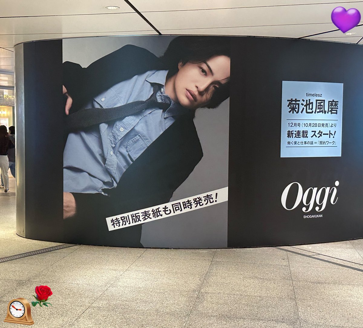 timelesz・菊池風磨さんのOggi新連載「照れワーク」開始を記念して「Oggi12月号 特別版」の表紙カバーカットが東京駅地下通路に大スケールで登場中♡ 詳細▶︎▶︎▶︎oggi.jp/7615992