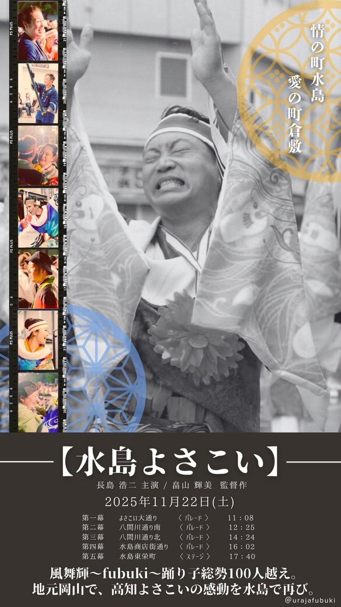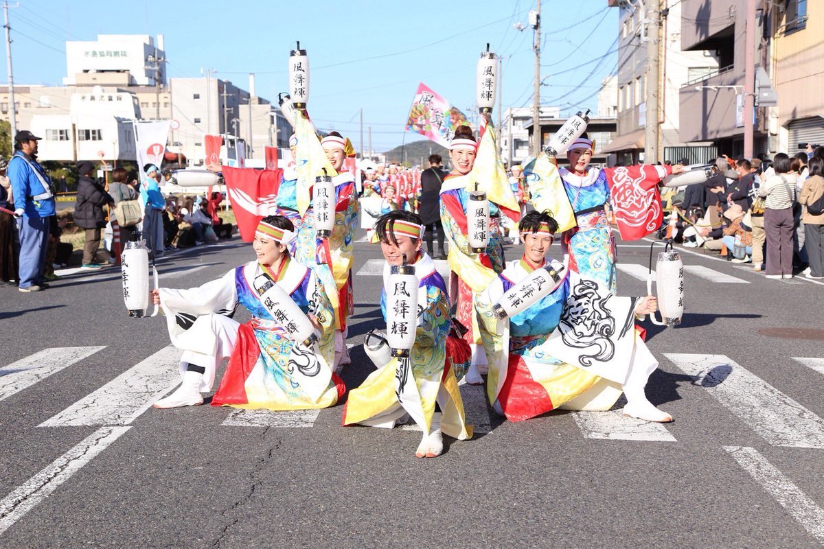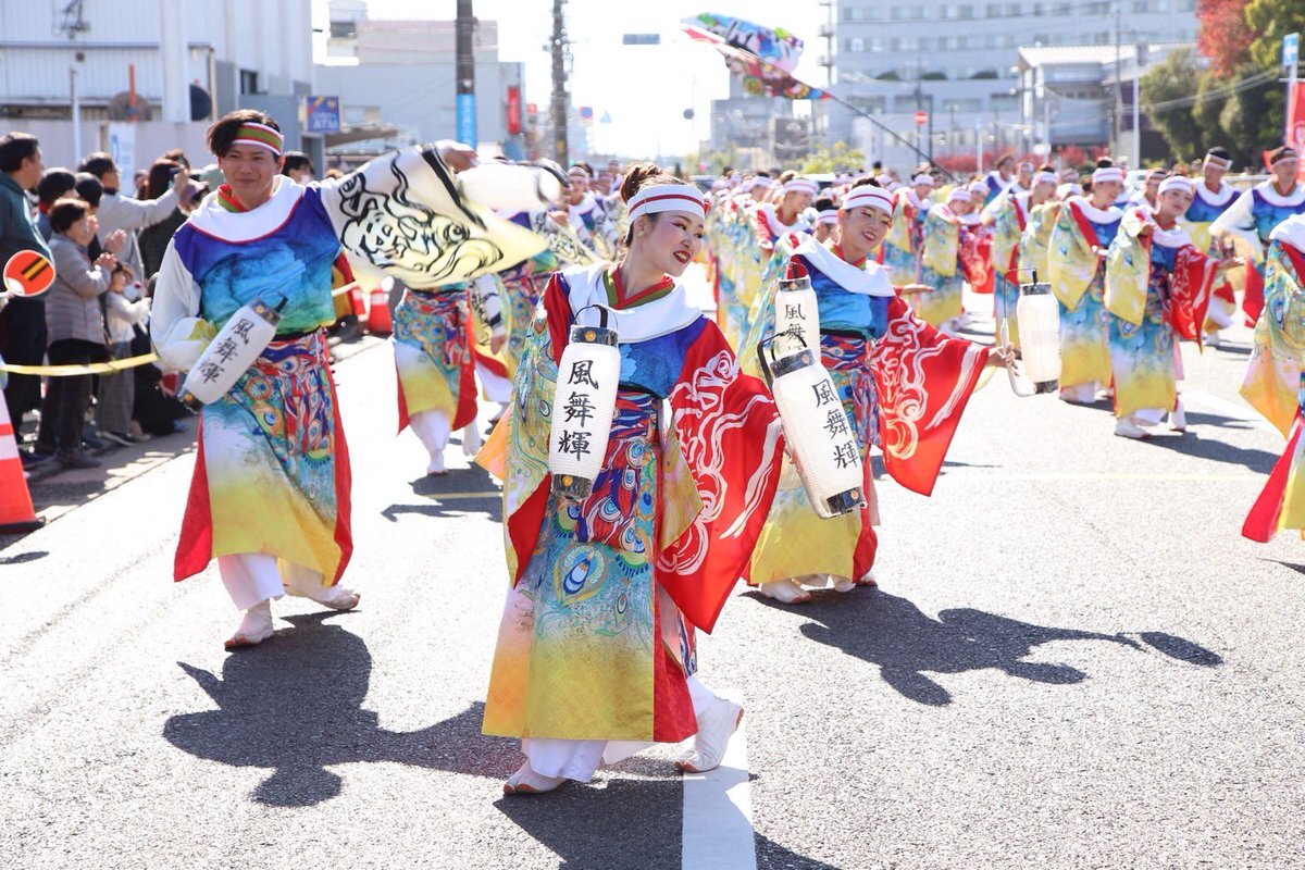 次回の予定は…【水島よさこい】 なんと高知本祭さながらの約100人!笑 屋台もたくさん! 今年からパレードとパレードの間で パンマルシェもあるそうです🍞🥐🥖 年内最後のお祭り、皆様にお会いできること 楽しみにしております🙌 #風舞輝 #水島よさこい pic.x.com/ybsiyDa03Y