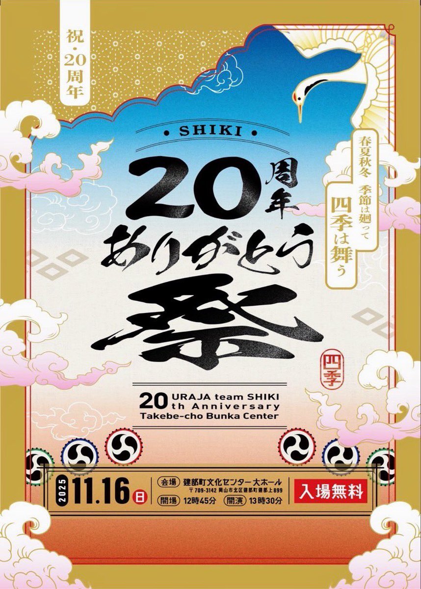 今週末はこちら🙌 うらじゃ連 四季さんの 20周年ありがとう祭で踊らせていただきます🌟 入場無料なので皆様ぜひ遊びに来てください♪ #風舞輝 #うらじゃ連四季 pic.x.com/X1siJgYaCf