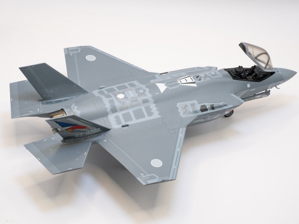 ハセガワ 1/72 F-35A JASDF 302sq 50周年記念塗装機 今回RAMコーティング部分はデカール。 気を使ったつもりでしたが、シルバリングが結構出ちゃいました。 やはりオジロはハイビジが良い。 #Aircraftmodel #飛行機模型 pic.x.com/mWEIhKZ77W
