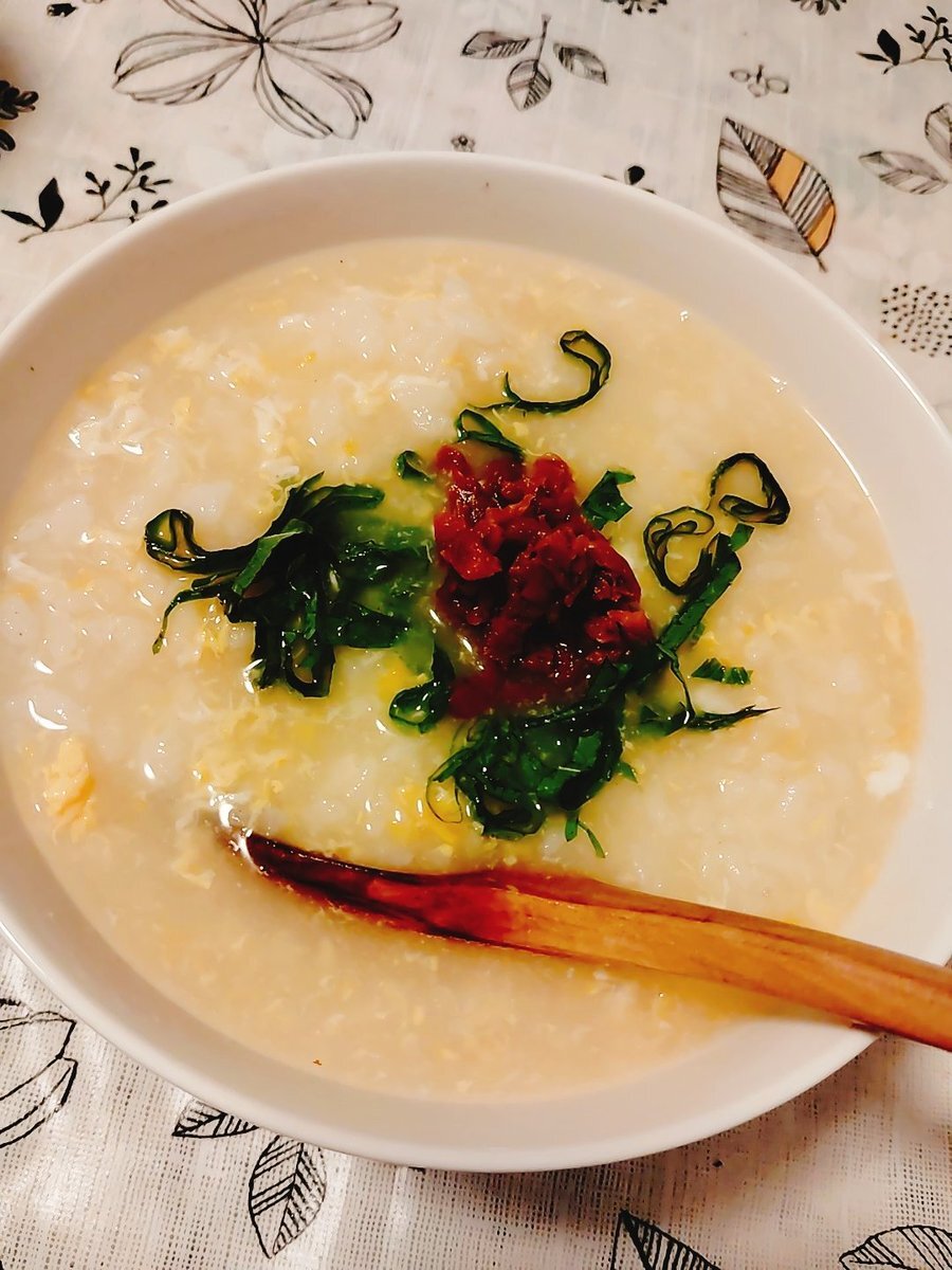 昨日の夜食🌜🌚🌛 卵がゆに種を抜いて軽く叩いた梅干しと大葉を混ぜたら、梅干しの塩気と大葉の香りで良い味付けになりましたᕷ*.° こういう時に冷凍ご飯は役に立ちますね⟡.· #食べることは生きること pic.x.com/PyoiyIaNKI