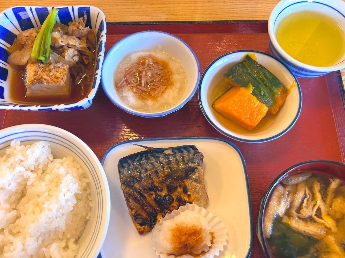 健康診断終わりの 定食チョイス ごはん中 味噌汁 鯖の塩焼き 牛すき煮 なめこおろし 南京煮 いただきます🙏 #食べることは生きること #まあまあ食べる pic.x.com/7KBeurITwG