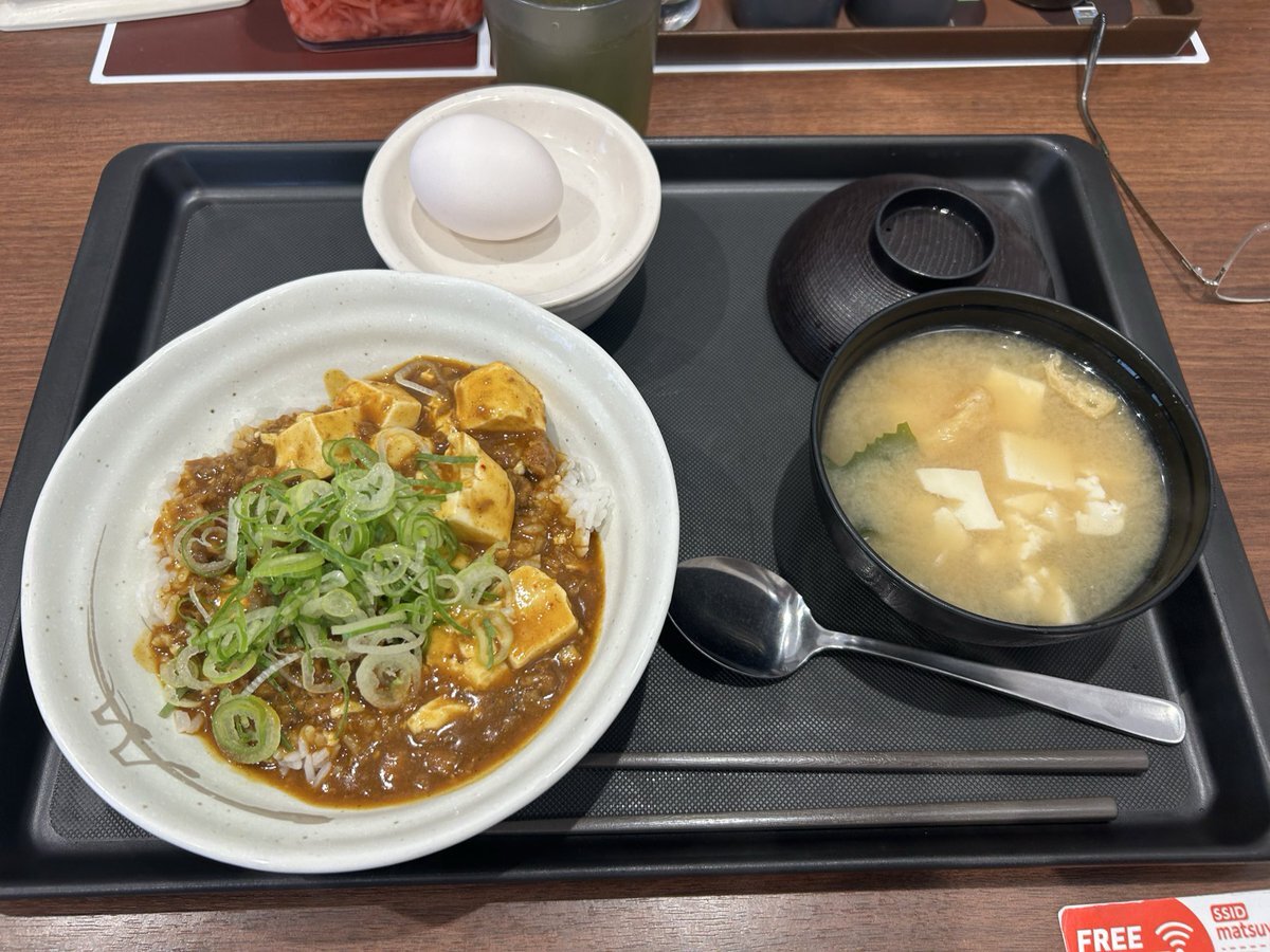 #松屋 店舗限定メニュー マーボーカリー丼 690 味噌汁に豆腐 50 なんだろ マーボー豆腐丼にカレーパウダーを混ぜただけって感じ。 絶対山田町の #酣 のほうがうまい。 #食べればわかるさ pic.x.com/twX1bTtQz4