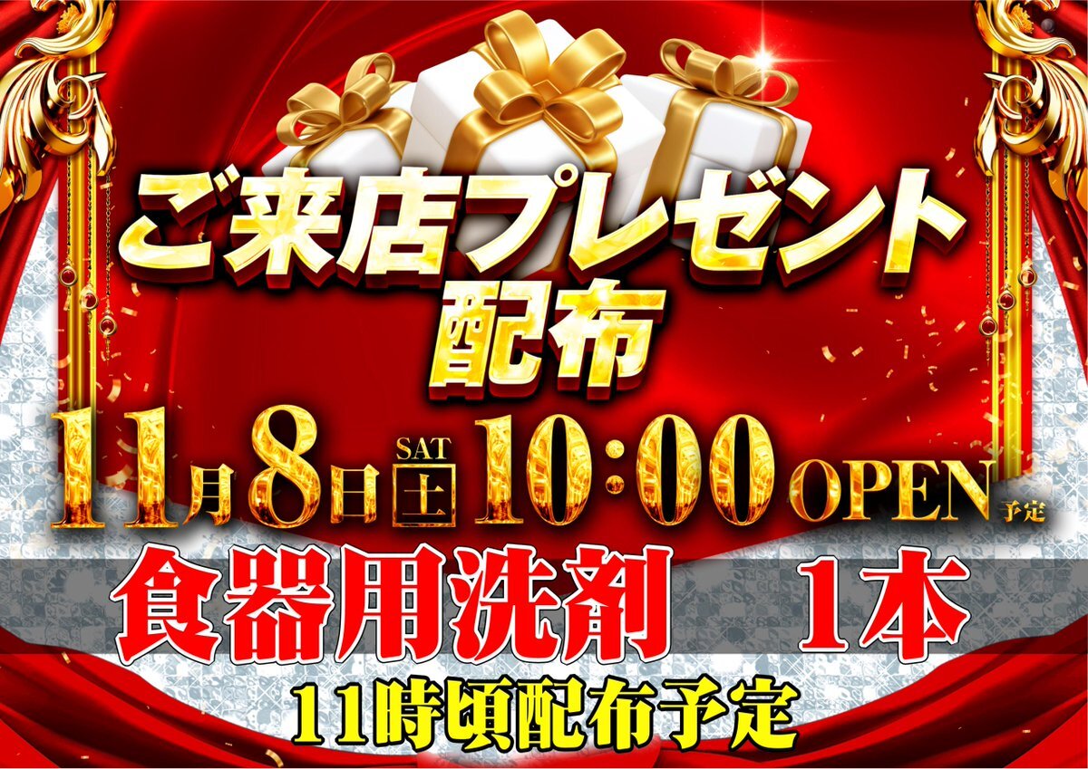 ✨📢 ご 案 内 📢✨ 11 / 8 ( 土 ) 10時OPEN 抽選開始9:45 予定 ~ #来店プレゼント ~ 🎁 #食器用洗剤 1本 🎁 11 時 頃 配布予定❗ ⚠️配布時間は前後する場合がございます⚠️ 朝からのご来店をお待ちしております😍 #誕生月間 #花王 #キュキュットクリア除菌 #ダイナム pic.x.com/xzu8dyZAe0
