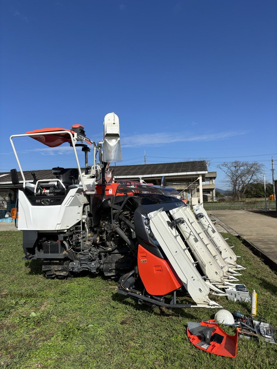 水稲担当がコンバインの掃除とメンテナンスのために刈り取り部やグレンタンクをオープン! #はりまる普及担当の日常 #今日は水稲担当の日常 #神戸大学 #食資源教育研究センター #作物系 #コンバイン #はりまる普及担当はタマネギとハクサイの薬剤散布とかサツマイモ収穫機の片付けとかしましたよ pic.x.com/1R3AfXroEK