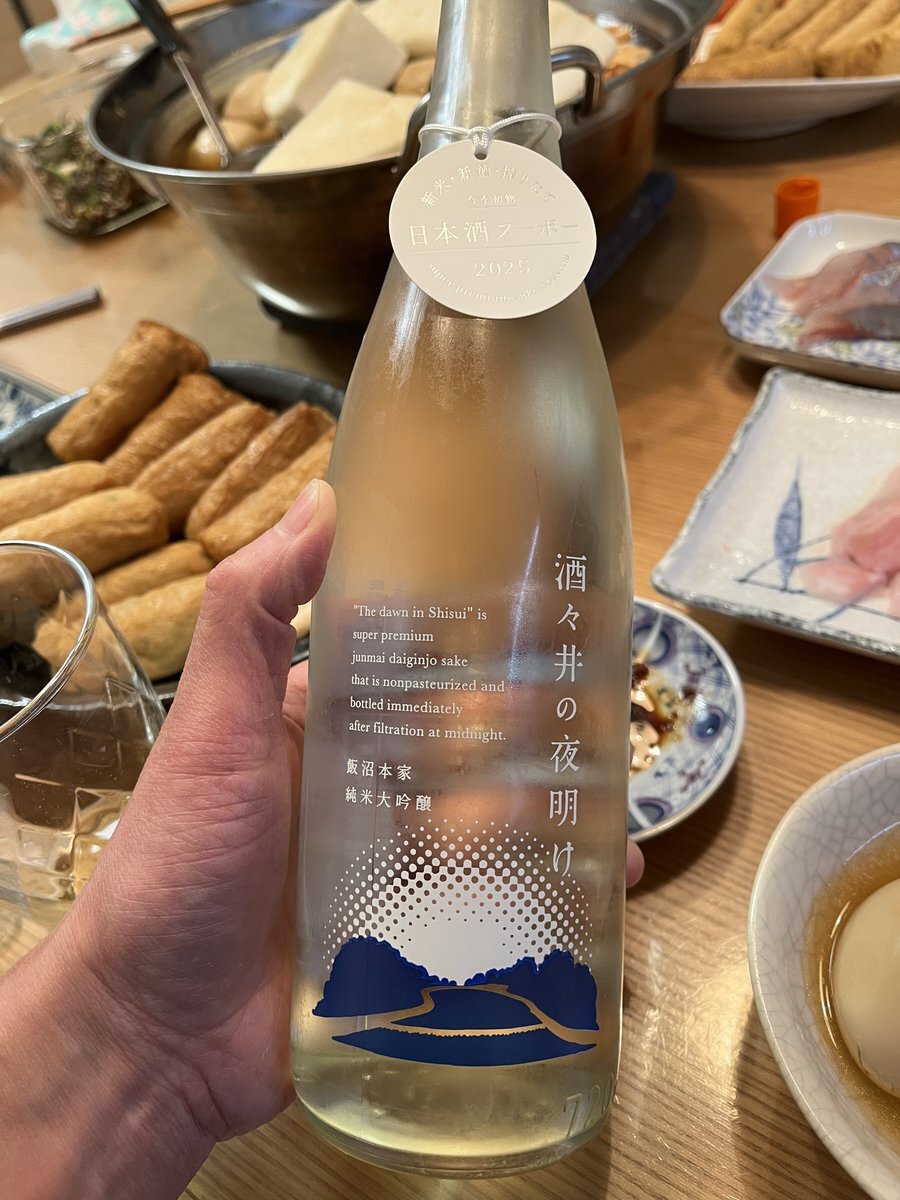 ㊗️2025酒々井の夜明け㊗️ 開栓です。 今年も呑むことができた。 マジ最高です🍶 元気な海苔子のおでんも🍢 金七クラシック節ダシ炸裂で 酒→汁→酒→汁と時を忘れる勢い。 ありがとうございました!!!!! #飯沼本家 #ふじはら酒専門店 #金七商店 pic.x.com/5EFGI2rg8V