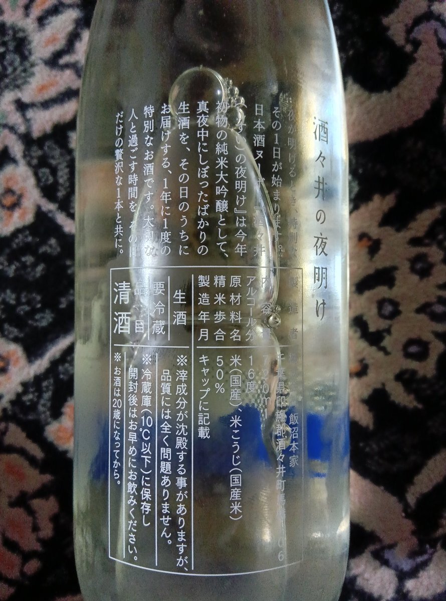 取り寄せていた酒々井の夜明けが一日早く届いたのでいつもの所で開封の儀を行いました🍶 フルーティーで好みの味です😊 今日飲まないと意味がないかなと思いつつもう一本あるのでそれは遠方のゲストを迎える用にします。 #酒々井の夜明け #飯沼本家 pic.x.com/FWcla4GI9h