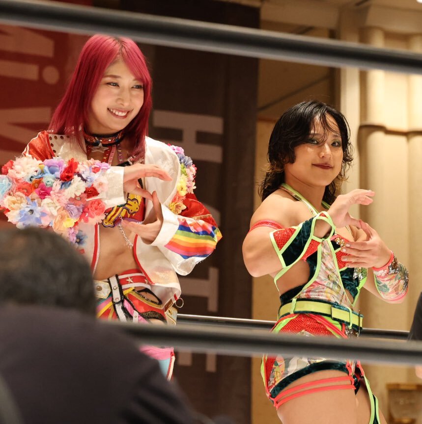 【11.3 千葉大会試合後コメント】 飯田沙耶 「自分たちがチャンピオンだった時よりも今新しい風がどんどん吹いてるなって思うから、チャンプになった二人 生かすも殺すもお前ら次第だけど、二人なら絶対にもっといい景色を作り上げてくれるんだろうなと信じてます」