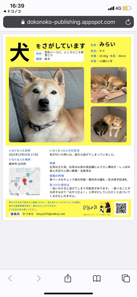 【2024年3月更新】 2021年12月31日より大事な家族を迷子にさせてしまいました。 似ている犬をみかけましたら、DM又は下記のメールアドレスまでご連絡をいただけましたら幸いです。 #拡散希望RPご協力お願いいたします #迷子犬 #柴犬 #群馬県 #館林市 #埼玉県 #栃木県 #茨城県