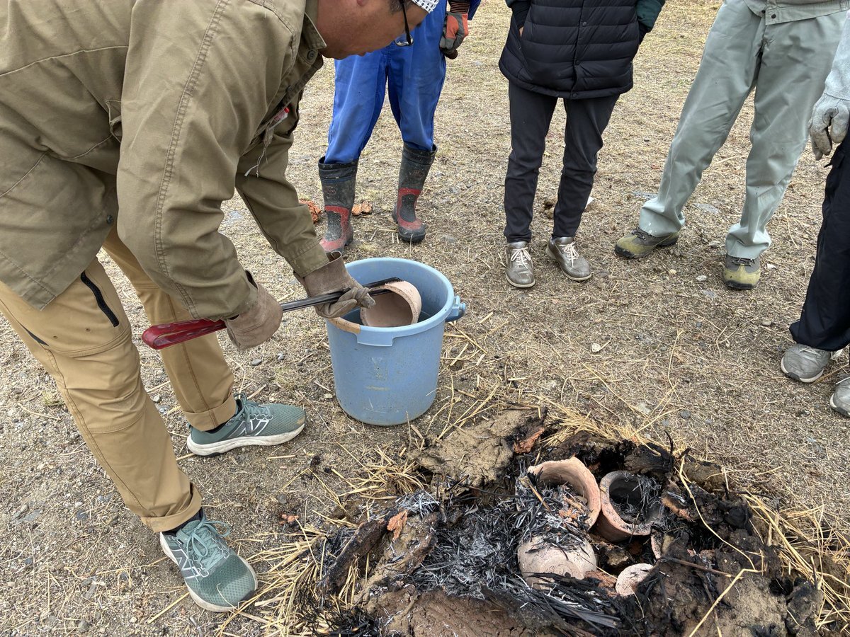 自然鎮火を確認した後しばらく冷まします。その後、土器を掘り起こし、水でしめたら完成です。 お手伝いしてくださったボランティアの皆様、本当にありがとうございました! #香川県埋蔵文化財センター #讃岐まいぼら #土器焼き pic.x.com/YQHVOAI2Zv