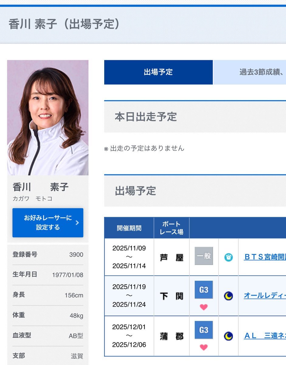 #ボートレース芦屋 明日から休み明けのもっぴーさんは複勝率40%オーバーの好素性機をゲット✨ 前検タイムも良くて💛🤍期待持てそう🙆♂️ 流石に新期一発目なので、スタート事故には細心の注意⚠️を払っていただきたいところです。 #香川素子 #TEAMMOPPY