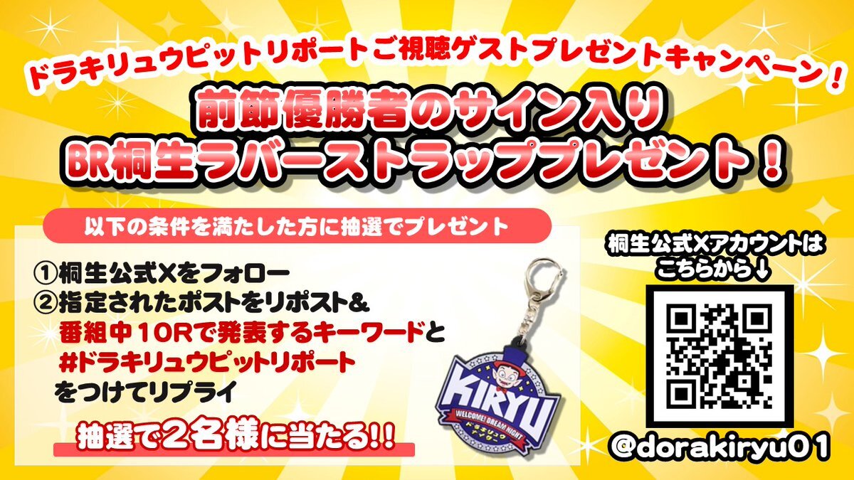 / 前節優勝者「#香川素子 選手」のサイン入り! BR桐生オリジナルラバーストラップが抽選で当たる🤩 \ 【応募条件】 ・フォロー&リポスト ・この投稿に、ピットリポート10Rに出題されるキーワードと #ドラキリュウピットリポート を記入してリプライ 期限は10/8(水)15時まで📷‼️ pic.x.com/5BpitCSlmP