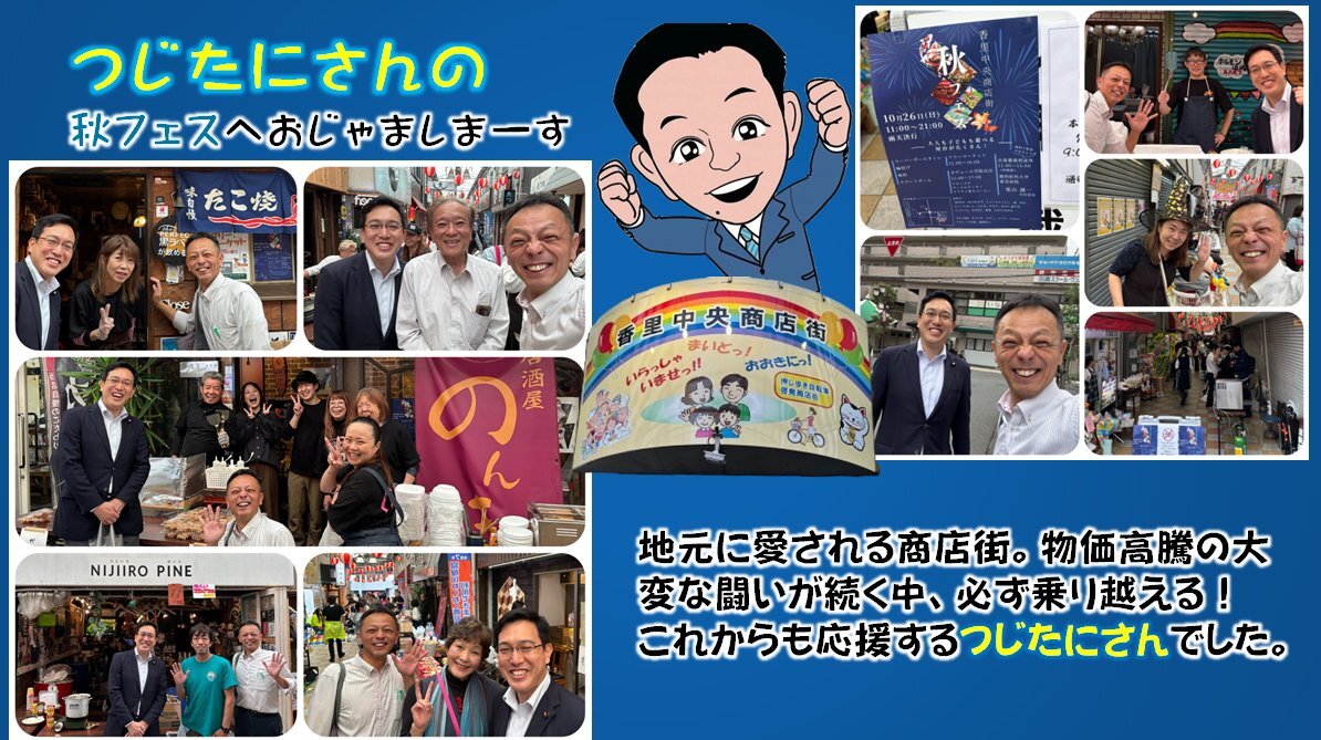 返信先:@tsujitani7srtmhつじたに恵一さん こんばんは お疲れマックスです 杉ひさたけ 参議院議員とともに 「#香里中央商店街 の秋フェス」へ これからも応援マックスで お疲れさまでした。🙇♂️👍✌️😊 pic.x.com/gIvJhebXzD