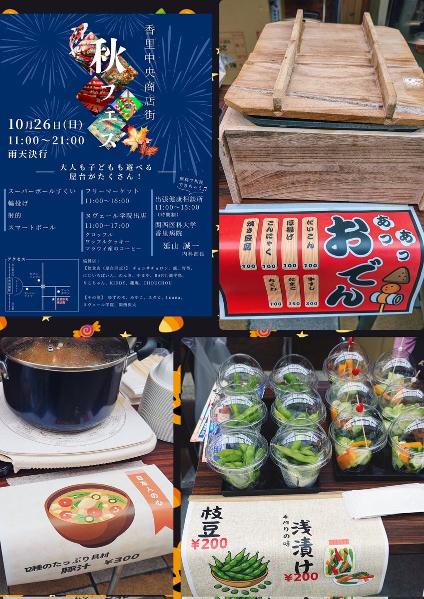 【#香里中央商店街 #秋フェス】 #宵待 🌙さんでは ビール🍺以外にも お腹が空いたら おでん🍢 温かくて美味しい豚汁🐷 アルコールのあてには 浅漬け🥒&枝豆🫛 ソフトクリーム🍦もあるので お近くの方は、ぜひとも行ってみてね 今夜21時まで楽しめます! x.com/ayuminosora/st…
