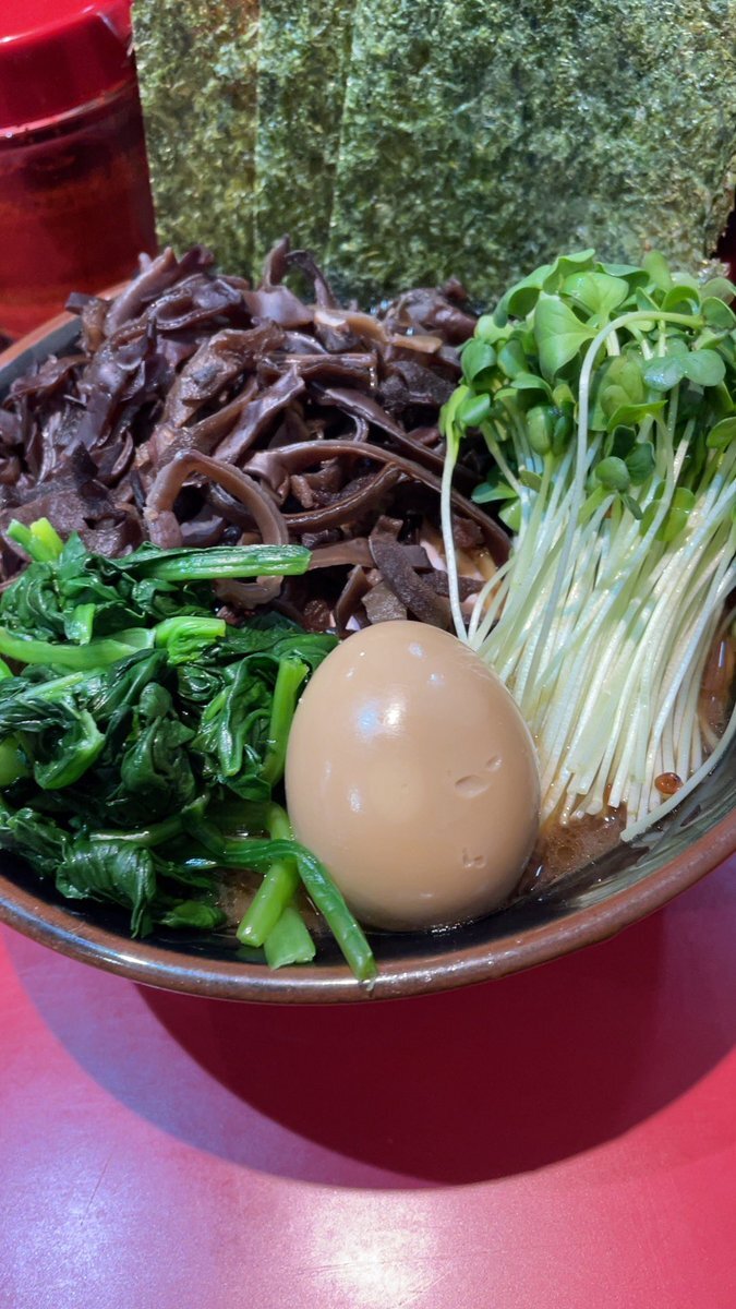 駒岡家、ラーメン(中)TP→キャベツ&薬味ネギ&キクラゲ&味玉🍜試験一週間前、最後の山を乗り越えるため、阿久津店主の魂の一杯を体に注ぎ込む😋美味しい🍜と激励を貰い最高のランチタイム🎶今日も満腹大満足🫄ご馳走様でした🙇#駒岡家 pic.x.com/LgwqeW2DD4