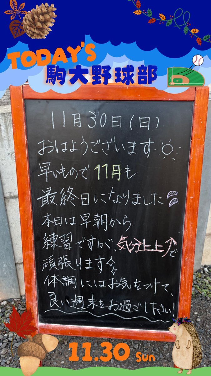 【今日の駒大野球部】 11月30日(日) 天気:☀️ 11月最終日も元気に練習に励みます🔥 #駒澤大学硬式野球部 #駒澤大学 #駒大野球部 #東都大学野球 #今日の駒大野球部 pic.x.com/JfK5OTEEk8