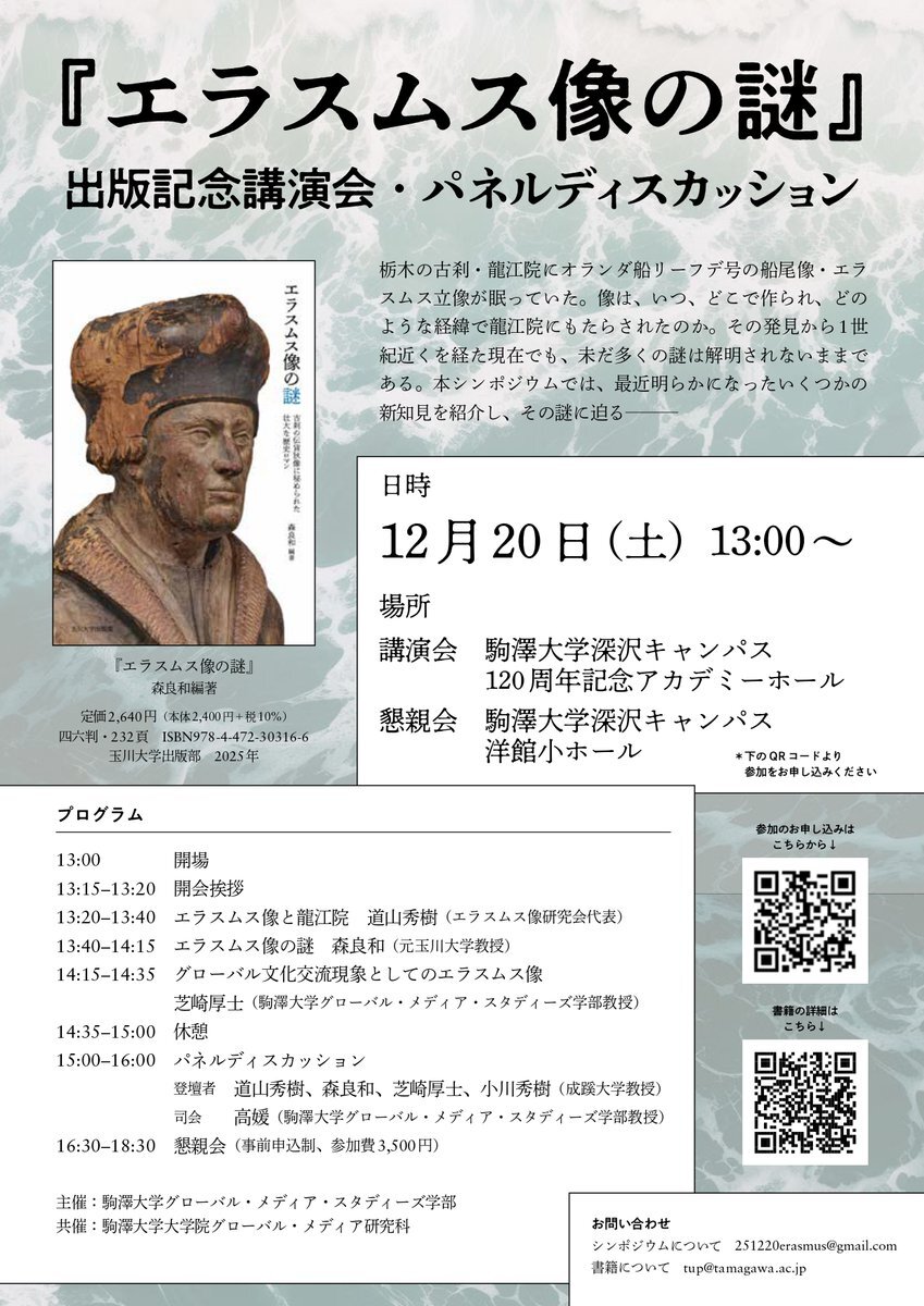 【『エラスムス像の謎』出版記念講演会・パネルディスカッション】 tamagawa-up.jp/book/b10153237… 刊行を記念して講演会・シンポジウムを開催。ぜひご参加を! 12月20日(土)13:15~16:00 #駒澤大学 深沢キャンパス120周年記念アカデミーホール ※詳細は下記でご確認を。(い) komazawa-u.ac.jp/event/2025/111… pic.x.com/CwUoMinsK9