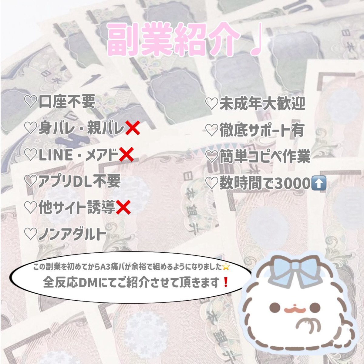 【学生に優しい副業💭💕】 ・受け取り方法たくさん‼️ ・義務教育中の未成年🙆🏻♀️身バレなし👍🏻✨ 初心者様🔰大歓迎です!◎ 全力でサポート致しますのでこれを機に一緒に頑張ってみませんか?💭💕 #副業紹介 #副業探してます #すとぷりすなーさんと繋がりたい #いれりすさんと繋がりたい